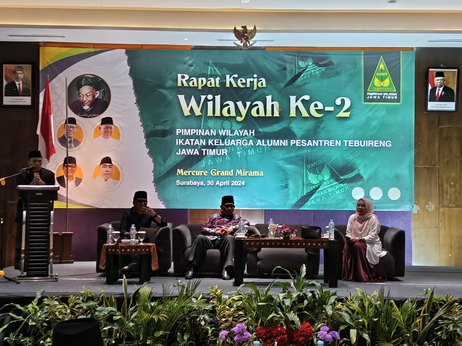 SURABAYA, SabdaNews.com- Bertempat di Grand Mirama Mercure Surabaya diselenggarakan Rapat Kerja Wilayah 2 (Rakerwil) Ikatan Keluarga Alumni Pesantren Tebuireng (IKAPETE) Jawa timur dengan melibatkan peserta pimpinan pengurus Ikapete Cabang Kabupaten se Jawa Timur dan pimpinan pengurus Ikapete Jatim. Beberapa agenda acara adalah Sarasehan berkaitan kebijakan pendidikan dengan narasumber cak Deni anggota DPRD Surabaya dari Fraksi Gerindra dan dilanjutkan dengan Rakerwil 2 Ikapete Jatim.(30/04/2024)