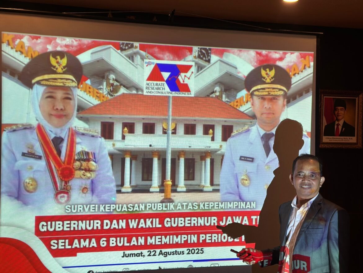 SabdaNews.com – Lembaga Survei Accurate Research and Consulting Indonesia (ARCI) merilis hasil survei kepuasan warga Jawa Timur terhadap kinerja Gubernur Jatim Khofifah Indar Parawansa dan Wakil Gubernur Jatim Emil Elestianto Dardak. Hasilnya, kepuasan warga Jatim terhadap kinerja Khofifah-Emil meningkat.