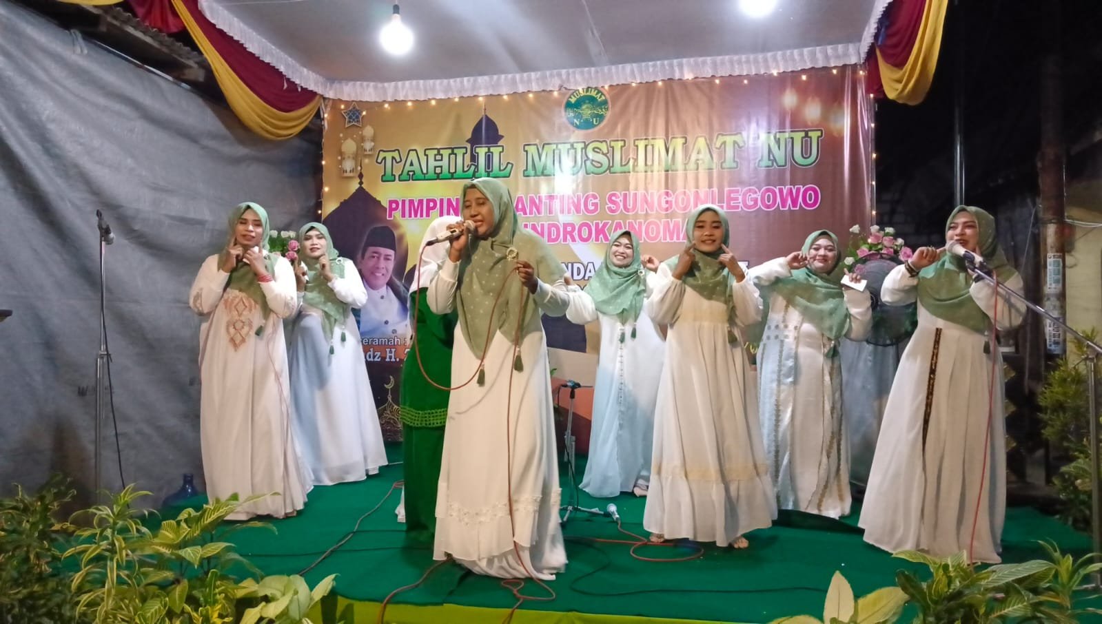 Dan sebagai acara inti, secara berturut-turut diisi dengan Lagu Indonesia Raya, Yalal Wathon, Mahalul Qiyam. Kemudian dilanjutkan dengan sambutan PR NU Muslimat Sungonlegowo dan Kepala Desa Sungonlegowo.