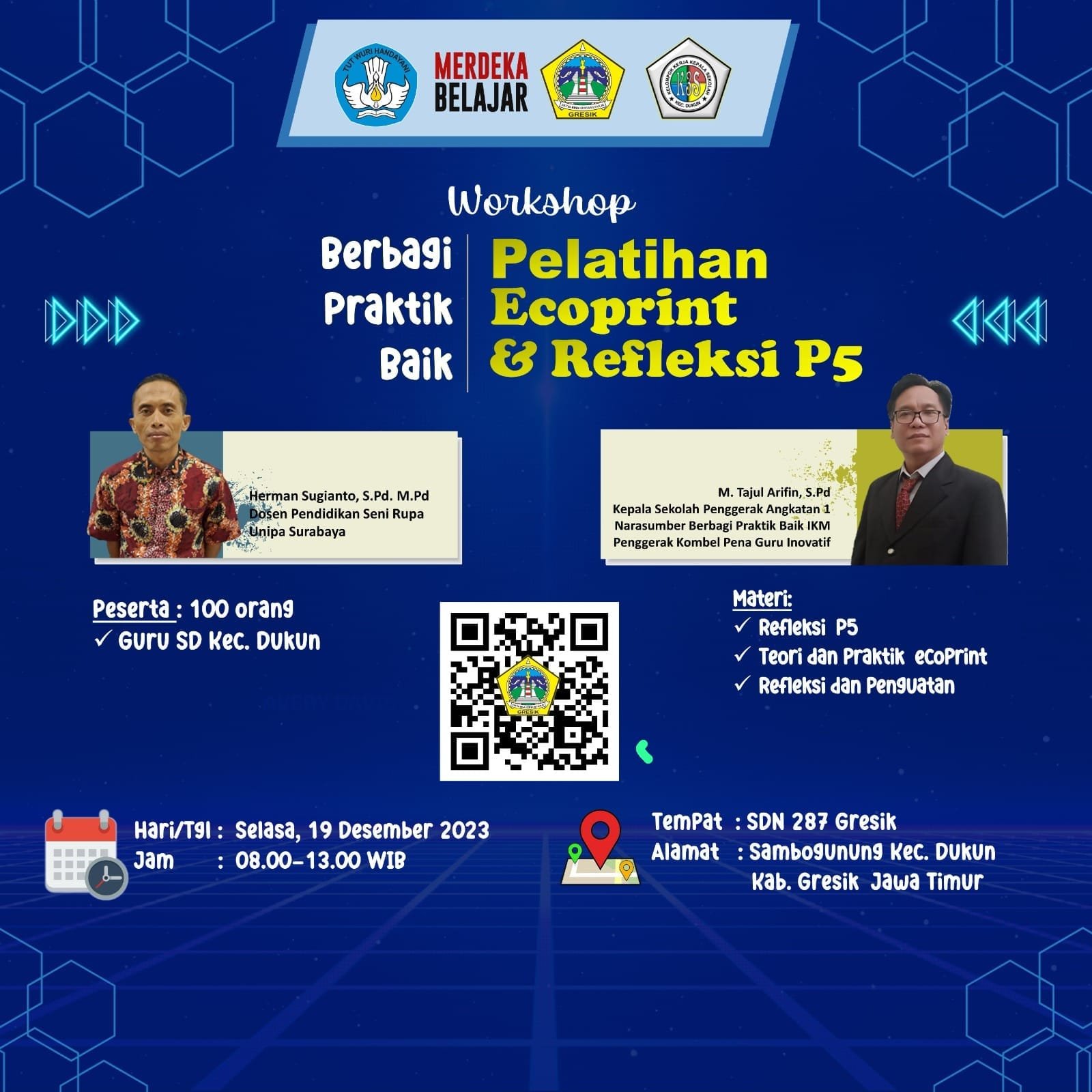GRESIK, SabdaNews.com- Bertempat di UPT SD Negeri 287 Gresik ( eks. SD Negeri Sambogunung) K3S Kec.Dukun menyelenggarakan WORKSHOP Pelatihan Ecoprint dan Refleksi Projek Penguatan Profil Pelajar Pancasila ,(P5), Selasa, (19/12/2023).