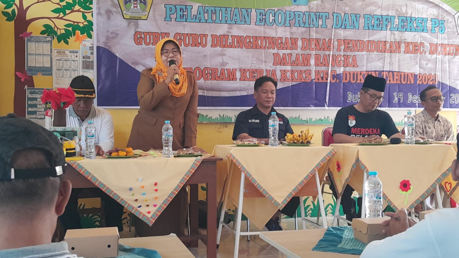 Dengan ucapan Bismillahirrohmanirrahim, Workshop Pelatihan Ecoprint dan Refleksi Projek Penguatan Profil Pelajar Pancasila (P5), saya nyatakan dimulai pelatihannya.Semoga selama pelatihan ini, Allah SWT memberi kemudahan dan kelancaran serta pulang dari Workshop pelatihan ini, Bapak/ibu dapat mengaplikasikan pada peserta didiknya di lembaganya masing-masing.”Tuturnya