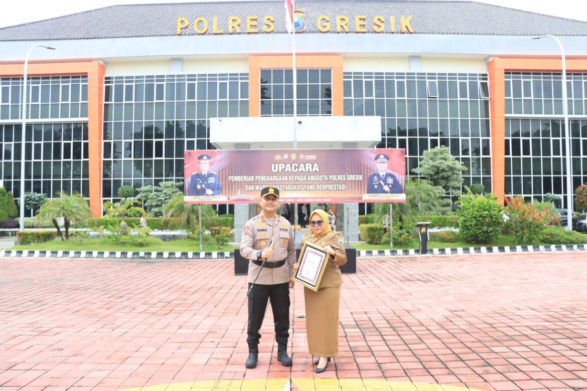 Ia menambahkan bahwa Aida adalah satu dari dua warga masyarakat yang terpilih menerima penghargaan pada Februari 2026 karena partisipasi aktifnya. Secara khusus, Kapolres mengapresiasi perannya dalam pengungkapan kasus curanmor roda dua di Duduksampeyan. “Saya selaku Kapolres Gresik mengucapkan terima kasih dan penghargaan yang setinggi-tingginya kepada personel dan warga masyarakat yang telah berprestasi. Kami berharap prestasi tersebut tidak hanya sampai di sini, namun dapat ditingkatkan lagi sehingga dapat menjadi contoh dan ketauladanan bagi personel Polres Gresik dan warga masyarakat lainnya,” kata Kapolres Ramadhan. (gus/lim/Red)