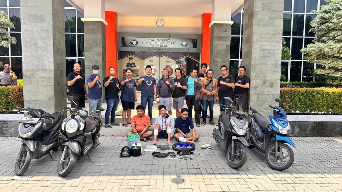 Tim Macan Giri langsung menunjukkan ‘taringnya’, pelaku curanmor ditangkap dan dihadiahi timah panas karena berusaga melawan petugas. Tiga tersangka yang diamankan adalah MRP (26 th) asal Simokerto, Kota Surabaya. ADW (26 th) asal Kenjeran, Kota Surabaya, dan AU (38 th) asal Bangkalan, Madura. Mereka adalah komplotan maling motor beraksi di Jalan Bali GKB, Roomo Manyar, Gresik pada Sabtu (25/1/2025) dinihari. Mereka mencuri sepeda motor Honda Beat milik korban.