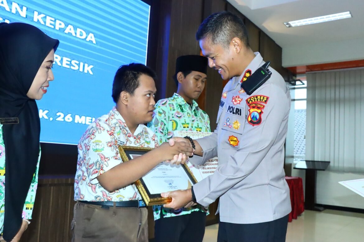Sebagai bentuk apresiasi atas dedikasi dan prestasi, Kapolres Gresik menyerahkan piagam penghargaan kepada sejumlah guru dan siswa yang telah menorehkan prestasi di berbagai ajang daerah, mulai dari lomba cerita bergambar, film pendek, fashion show, hingga bidang teknologi informasi dan olahraga.
