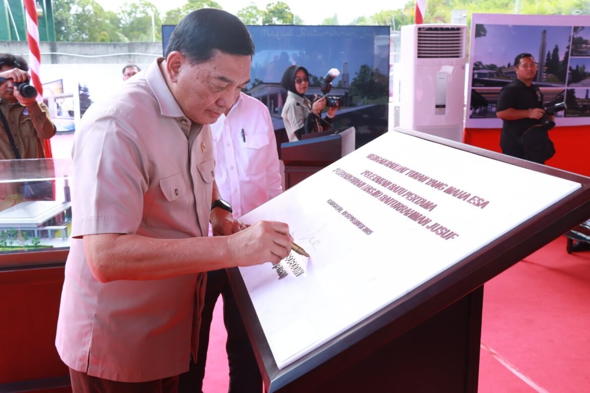 GRESIK ,SabdaNews.com- Menteri Pertahanan (Menhan) Jenderal (HOR) Sjafrie Syamsuddin didampingi jajaran pejabat tinggi TNI dan Polri, termasuk Kapolres Gresik AKBP Rovan Richard Mahenu, menghadiri acara peletakan batu pertama (groundbreaking) pembangunan Masjid Al Yusuf di kawasan (JNM), Desa Bambe, Kecamatan Driyorejo, pada Jumat (19/9/2025). Kegiatan ini menjadi penanda dimulainya pembangunan masjid yang diperuntukkan bagi karyawan di perusahaan yang berlokasi di Jalan Semeru II No. 6 dan dikenal sebagai produsen ransum halal untuk prajurit TNI.