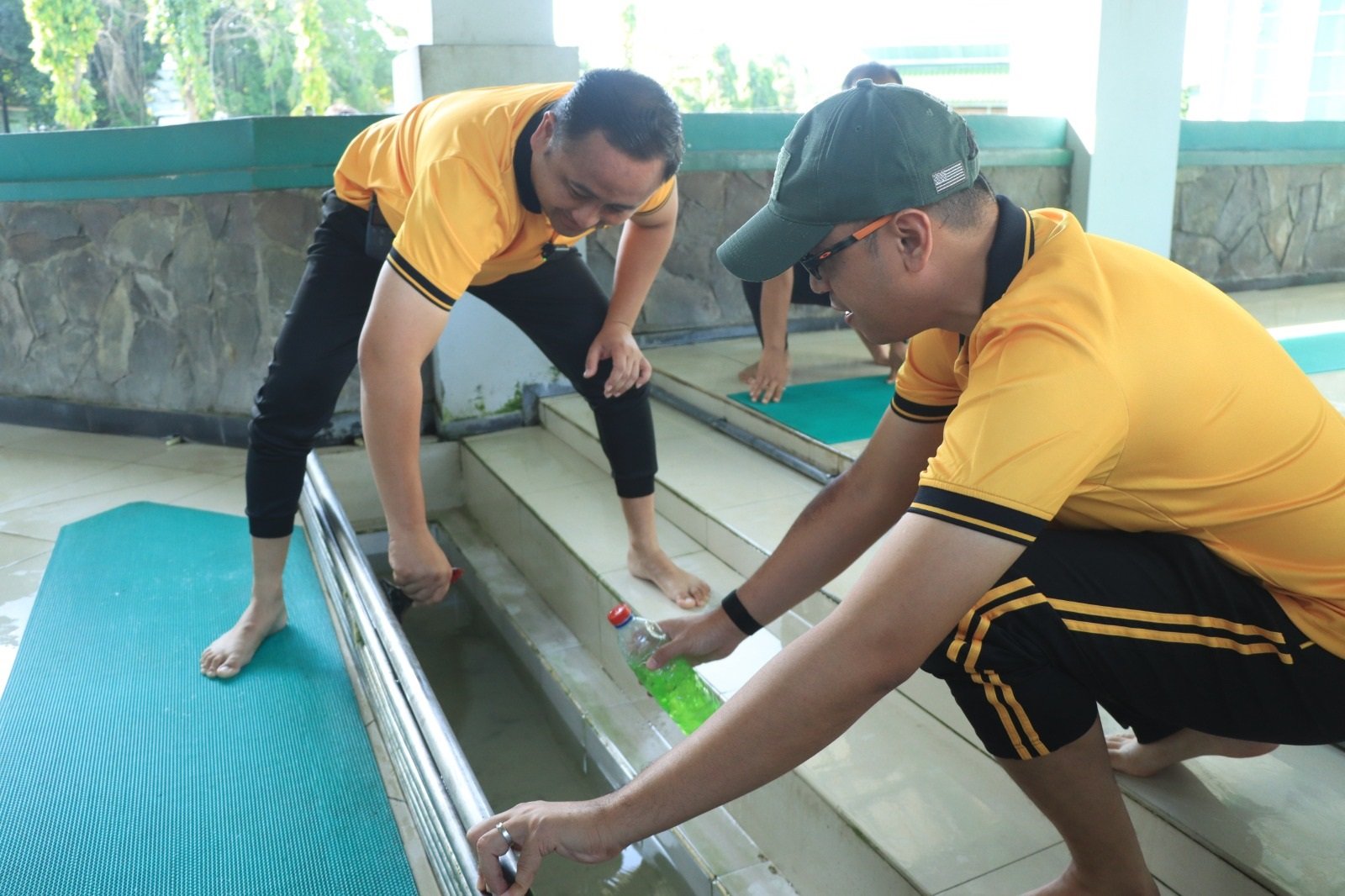 Arahan tersebut disambut antusias oleh anggota yang langsung bergerak sesuai ploting tugas masing-masing. Suasana kebersamaan tampak jelas saat personel bahu-membahu menyapu halaman, mengepel lantai, membersihkan kaca, hingga merapikan fasilitas umum demi memastikan lingkungan tempat ibadah tetap terjaga kebersihannya.
