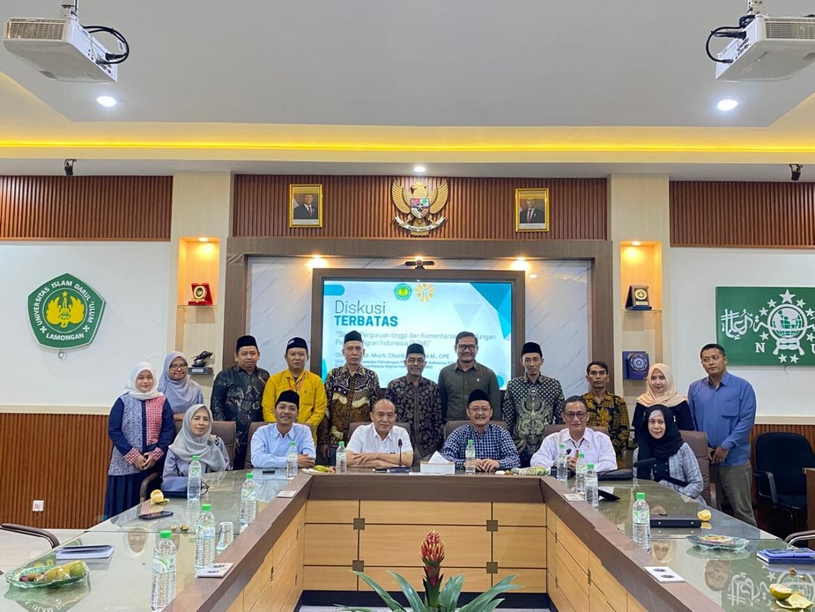 LAMONGAN.SabdaNews.com -Perguruan Tinggi memiliki peran strategis dalam mendukung pelindungan pekerja migran Indonesia (PMI), baik dari sisi akademis, teknis, maupun hukum. Hal ini mengemuka dalam acara Diskusi Terbatas tentang Sinergi Perguruan Tinggi dan Kementerian P2MI, yang digelar di Universitas Islam Darul Ulum (Unisda) Lamongan, Selasa (27/5/2025).
