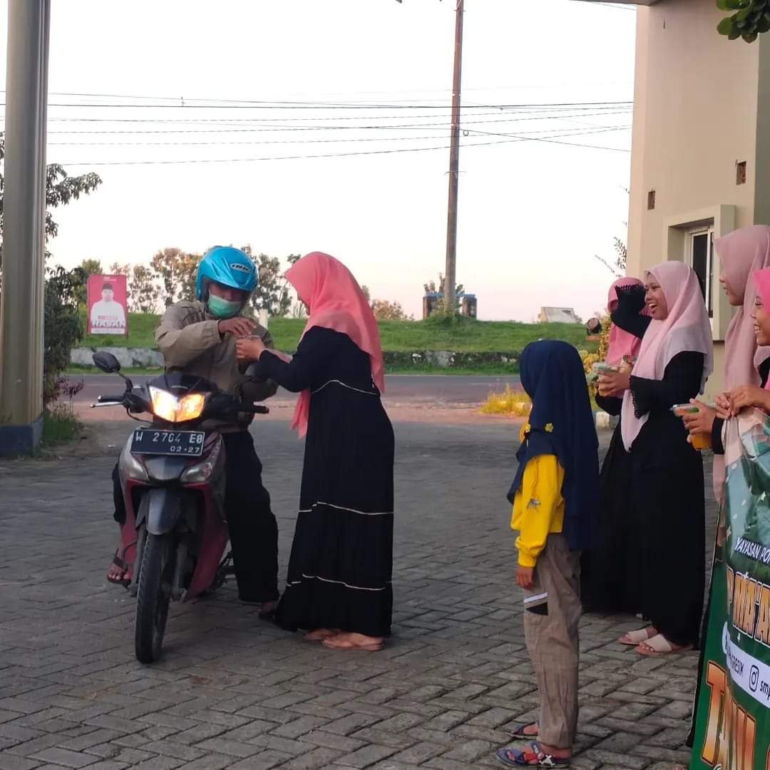Seperti yang dilakukan oleh Guru dan siswa SMP Maarif Alkarimi Tebuwung Dukun Gresik. Mereka kompak dalam giat pembagian takjil gratis untuk masyarakat pengguna jalan. Kegiatan pembagian takjil gratis dipusatkan di gapura Desa titik COD Tebuwung (12/4/2023)
