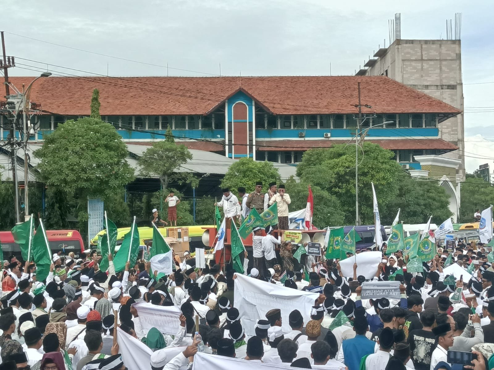 Audiensi diwakili 99 santri dari Ribuan Santri Alumni Pesantren se-Jawa Timur yang tergabung dalam Aliansi Santri Nderek Kiai (ASRI) meng’geruduk’ (sambangi) kantor DPRD Jawa Timur di Jl. Indrapura Surabaya. Secara tertib santri melakukan orasi menyampaikan aspirasinya terkait narasi yang menyudutkan kiai dan pesantren yang ditayangkan di Trans7 Senin (13/10/25). Selama orasi, perwakilan ASRI sejumlah 99 diterima oleh oleh Jajaran Pimpinan DPRD Jawa Timur di Ruang Paripurna untuk melalukan audiensi.