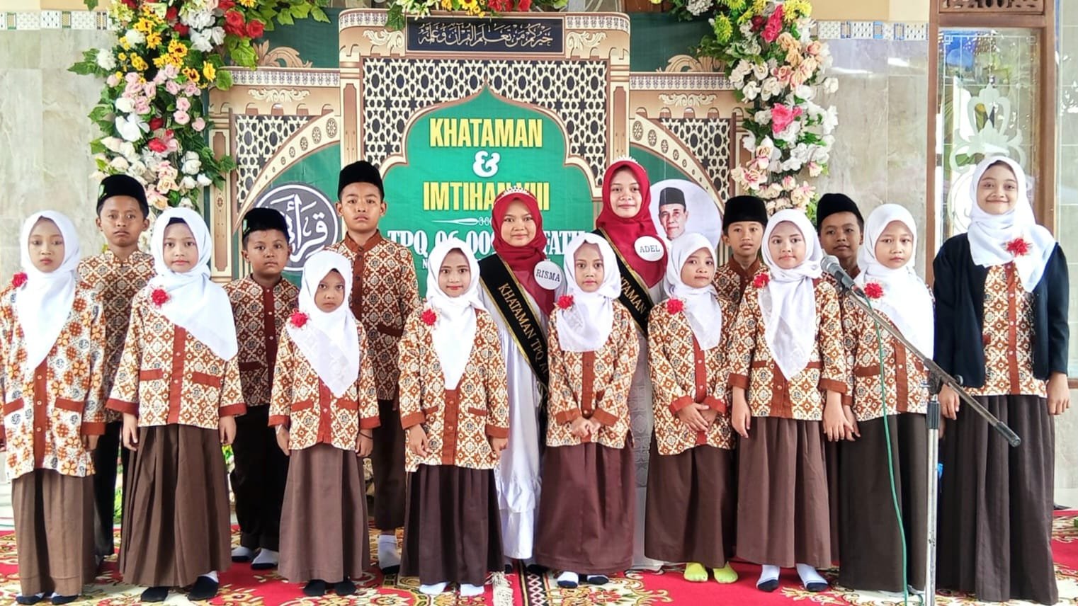 GRESIK,SabdaNews.com – TPQ Al Fath Dusun Ngulek, Desa Kalirejo, Kecamatan Dukun, Gresik menggelar khataman dan imtikhan yang ke-VIII bagi para santrinya yang telah lulus ujian dan akan menerima ijazah dari Korcab Qiroati Gresik di Halaman Masjid Jami’ Nurul Hasan, Sabtu (1/11/2025). Dalam kegiatan ini terdapat dua santri putri yakni Farisma Saadah dan Khansa Asadel Al Khaibah yang dinyatakan khatam atau telah menyelesaikan seluruh jilid Qiroati. Dan ada beberapa santri lain yang mengikuti imtikhan ke-VIII.