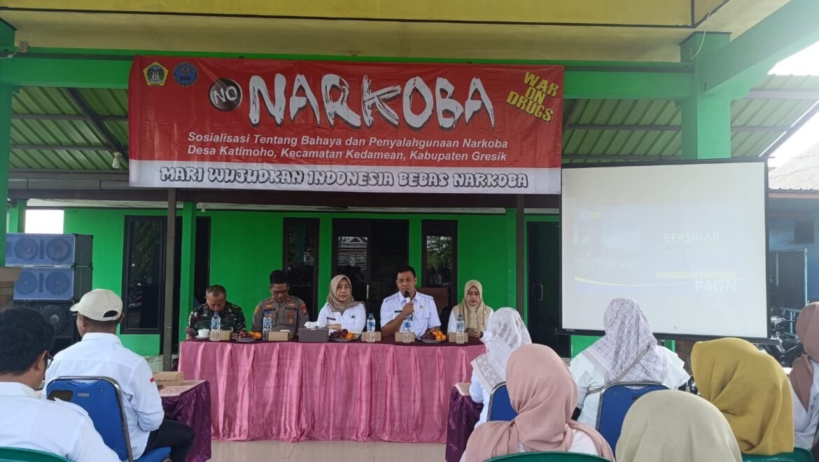 GRESIK, SabdaNews.com- Pemerintah Desa (Pemdes) Katimoho, Kecamatan Kedamean, Kabupaten Gresik berkolaborasi dengan Badan Narkotika Nasional (BNN) menggelar sosialisasi tentang bahaya penyalahgunaan narkoba, di Kantor Desa setempat, Rabu (10/12/2025). Program ini menjadi upaya Pemdes untuk mencetak generasi unggul desa. Kepala Desa Kades (Kades) Katimoho, Rini menyampaikan bahwa, bahaya narkoba ini sangat kompleks. Tidak hanya akan menjerat pelakunya ke dalam kasus pidana, tapi juga merusak kesehatan yang pada akhirnya akan menggangu kesejahteraan. Sosialisasi ini menjadi upaya preventif agar masyarakat Katimoho sadar untuk menjauhi narkoba untuk masa depan lebih unggul.