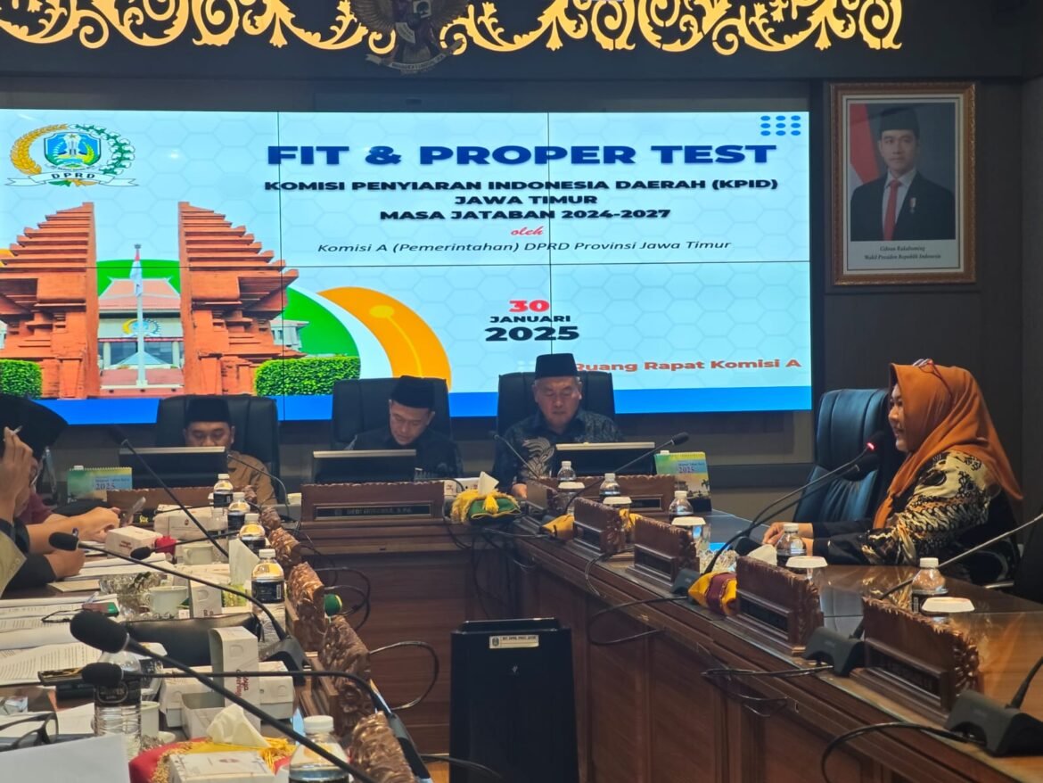SabdaNews.com – Sebanyak 21 orang calon anggota Komisi Penyiaran Indonesia Daerah (KPID) Jawa Timur periode 2024 – 2027 mengikuti seleksi fit and proper test (uji kelayakan dan kepatutan) dilakukan oleh Komisi bidang Hukum dan Pemerintahan DPRD Jawa Timur di ruang rapat Komisi A DPRD Jatim pada Kamis (30/1/2025).