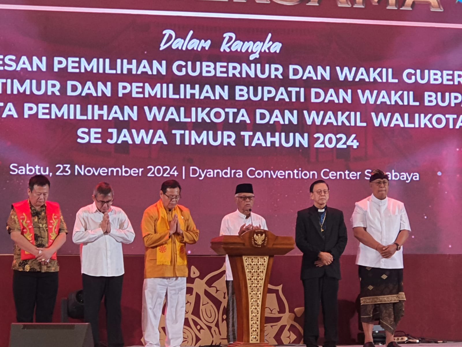 “Doa bersama lintas agama ini merupakan bagian dari tekad bersama sekalipun kita berbeda tetapi tetap bersatu dalam menjaga provinsi Jawa Timur agar tetap kondusif,” imbuhnya