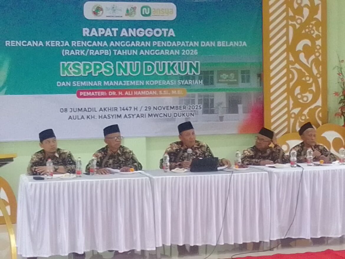 Gresik,SabdaNews.com- Bertempat di Aula KH Hasyim Asy’ari Majelis Wakil Cabang Nahdlatul Ulama'(MWCNU ) Dukun di selenggarakan Rapat anggota Rencana Kerja Rencana Anggaran Pendapatan dan Belanja ( RARK/RAPB) Tahun anggaran 2026 dan Seminar Dengan Tema” Menejemen Koperasi Syariah” Kegiatan ini menjadi agenda rutin diselenggaraka setiap tahunya menjelang Rapat Anggota Tahunan (RAT) tahun buku 2025 akhir Januari tahun 2026.