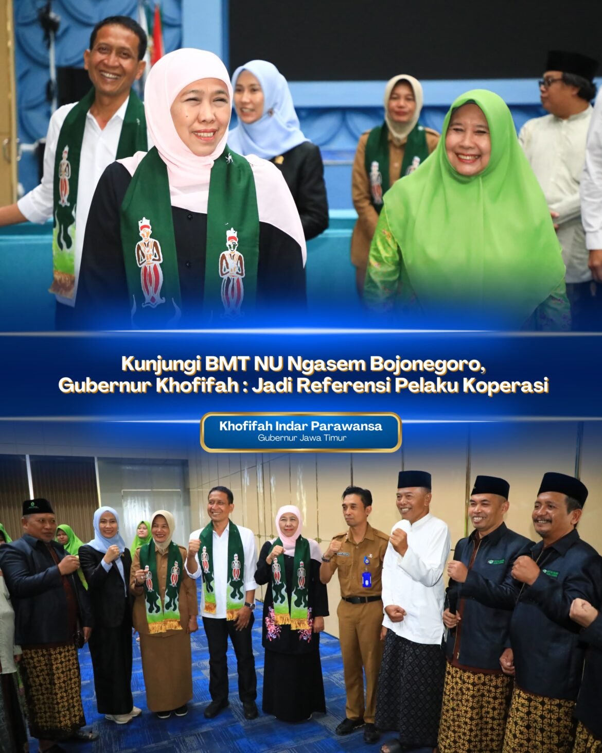 BOJONEGORO.SabdaNews.com – Gubernur Jawa Timur Khofifah Indar Parawansa mengunjungi Baitul Maal Wa Tamwil Nahdlatul Ulama (BMT NU) Ngasem Kabupaten Bojonegoro, Selasa (4/3/2025).