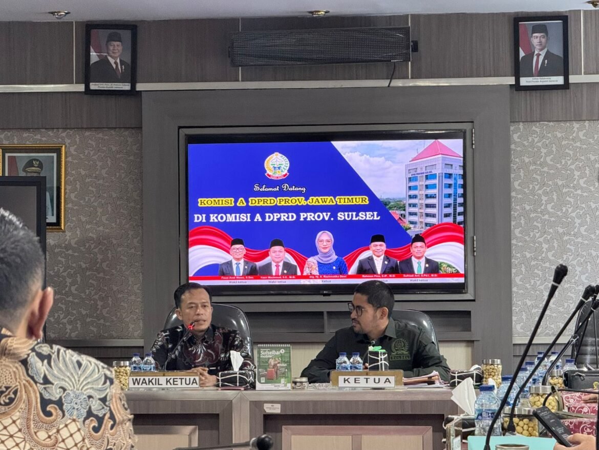 MAKASSAR.SabdaNews.com – Komisi A bidang Hukum dan Pemerintahan DPRD Provinsi Jawa Timur melakukan kunjungan kerja (kunker) ke Komisi A DPRD Provinsi Sulawesi Selatan dalam rangka membahas penyusunan kebijakan strategis di daerah.