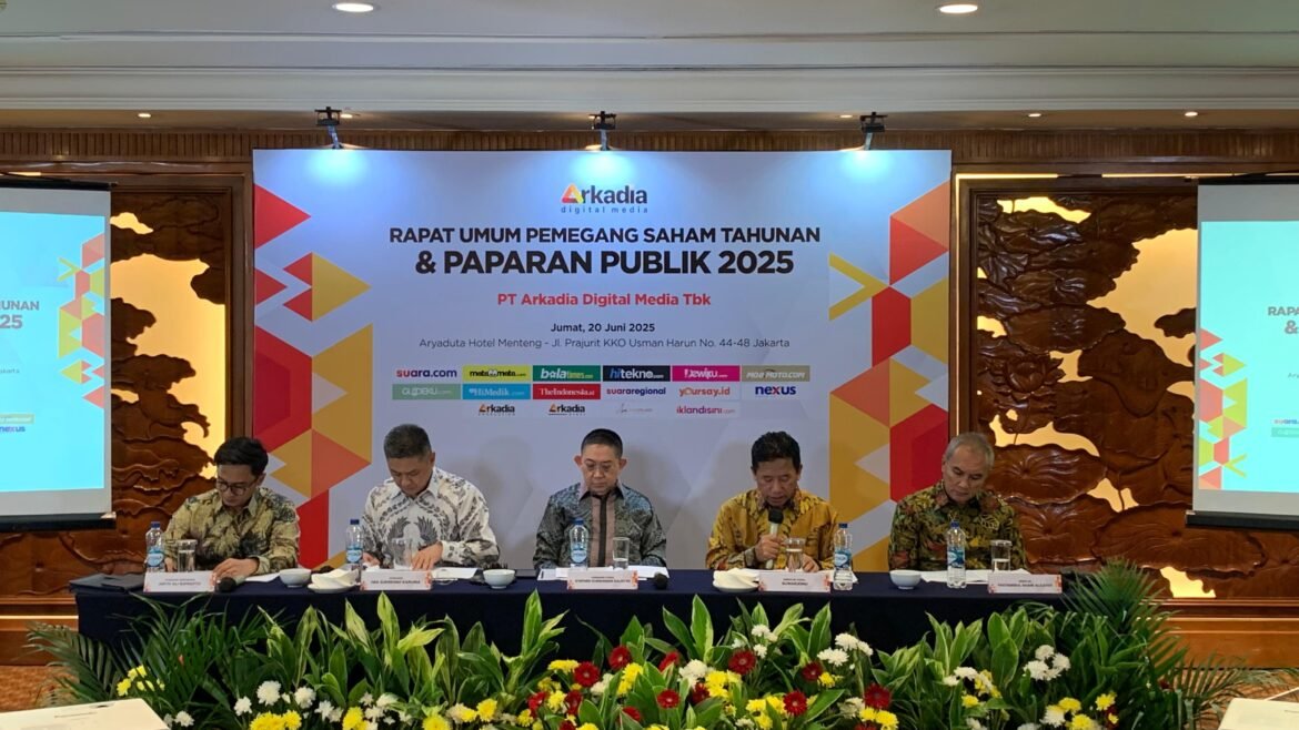JAKARTA, SabdaNews.com- PT Arkadia Digital Media Tbk (DIGI) melaporkan kinerja keuangan positif sepanjang tahun 2024. Tercatat pendapatan hingga laba bersih Perseroan naik signifikan dibandingkan tahun sebelumnya. Direktur Utama PT Arkadia Digital Media Tbk, Suwarjono menyampaikan ini dalam Rapat Umum Pemegang Saham Tahunan (RUPST) yang digelar di Hotel Aryaduta, Jakarta, pada Jumat (20/6/2025).