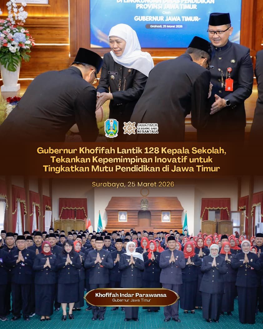Lebih jauh, Khofifah menegaskan bahwa Pemerintah Provinsi Jawa Timur terus memperkuat pembinaan manajemen pendidikan melalui penataan, mutasi, dan promosi kepala sekolah secara terencana dan terukur.