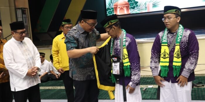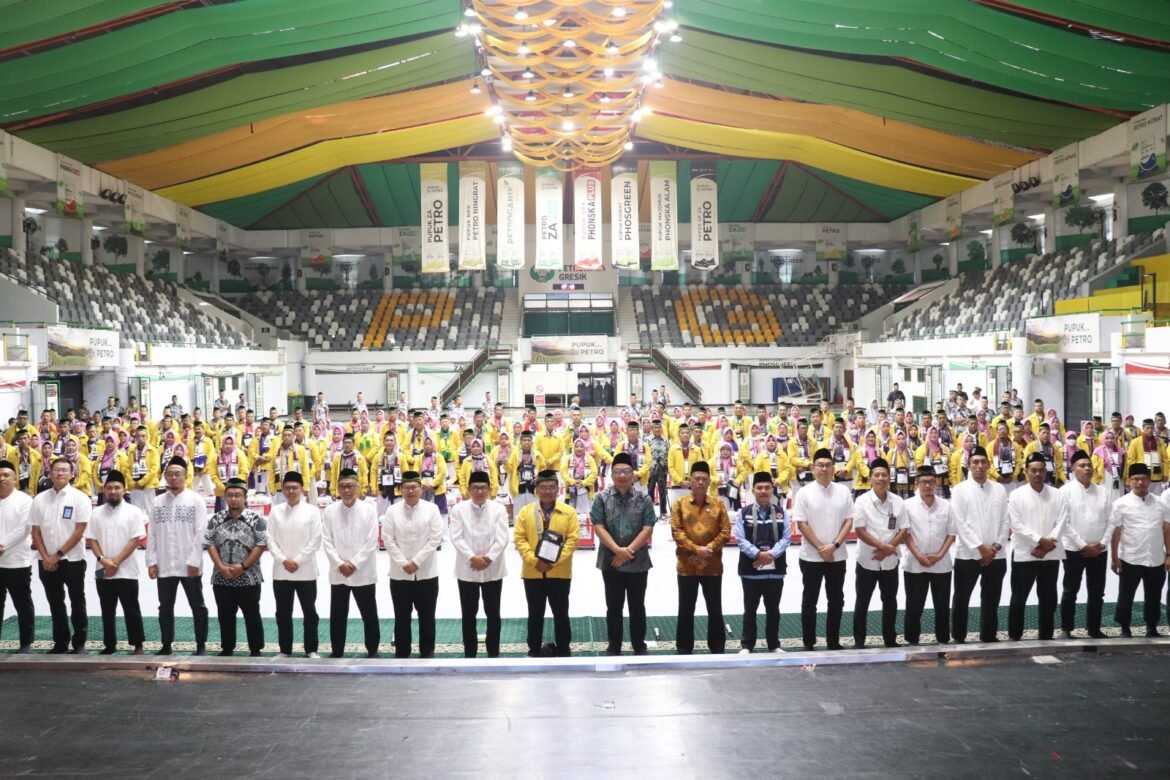 GRESIK, SabdaNews.com — Sebanyak 147 jemaah calon haji asal Kabupaten Gresik yang tergabung dalam Kelompok Bimbingan Ibadah Haji dan Umrah (KBIHU) Nurul Jannah mengikuti prosesi pamitan keberangkatan haji di Gedung Olahraga (GOR) Petrokimia Gresik, Kamis (22/5/2025).