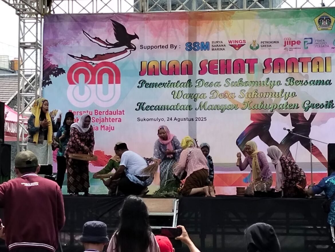 GRESIK, SabdaNews.com – Memperingati Kemerdekaan dengan tetap menumbuh kembangkan sikap mencintai tanah air dan sekaligus menanamkan sikap semangat dan kompak dalam mengisi kemerdekaan, tergambar dalam aneka lomba yang di gelar oleh pihak Desa Sukomulyo, Kecamatan Manyar. Antusias warga masyarakat desa Sukomulyo untuk mengikuti jalan sehat sejak jam 06.00 lapangan bola desa setempat sudah dipadati warga yang akan ikut jalan sehat dengan memutari wilayah desal dimulai memasuki kampung, dan lanjut memutari perumahan, sedangkan finish nya dilapan bola.