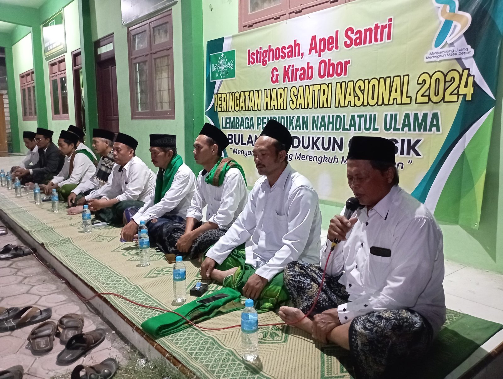 GRESIK, SabdaNews.com-Peringatan Hari Santri Nasional (HSN) tahun 2024 bagi lembaga pendidikan (LP) Maarif NU Desa Bulangan Kecamatan Dukun menjadi ajang komunikasi dan Silaturrahmi antar pengurus NU serta Banom. Dengan Ikhtiar bersama membangun kebersamaan dalam Khidmah di NU. Semarak HSN LP Maarif NU Bulangan beberapa agenda acara diantaranya : Apel Santri dengan Membawa Obor, Apel Santri dan doa bersama. Kegiatan tersebut diikuti seluruh siswa dan wali murid LP Maarif NU Bulangan.(22/10/2024 Malam)