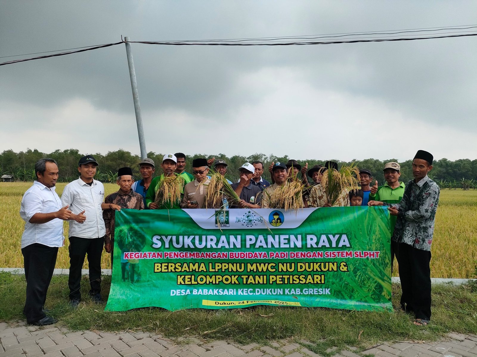 GRESIK,SabdaNews.com-Alhamdulillah rasa syukur patut di haturkan kepada Allah SWT. Pasalnya hari ini lembaga pengembangan pertanian Nahdlatul Ulama (LPPNU) MWCNU Dukun hari ini dengan guyup rukun membersamai kebersamaan dengan kelompok Tani Petisari panen raya dengan sistem SLPHT.