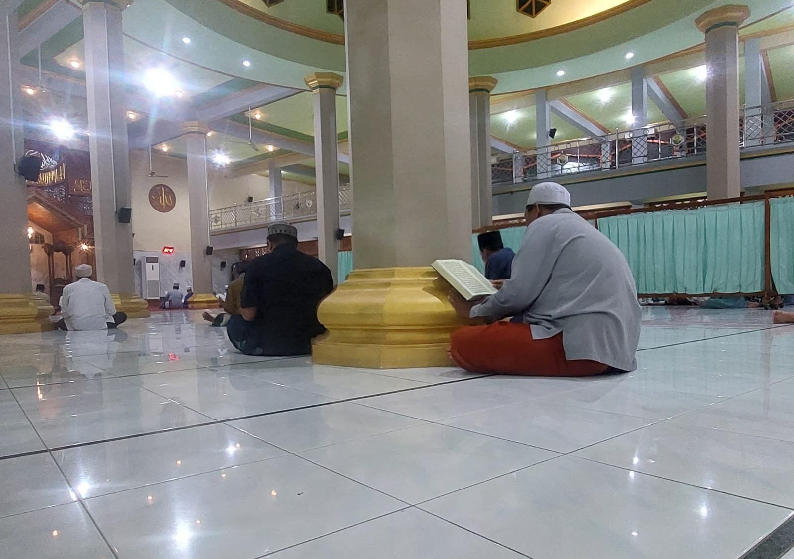 Khataman Al Quran berlangsung setelah jama’ah shalat terawih. Suasana tampak begitu hangat, para jamaah secara serentak membaca ayat-ayat suci Al Qur’an hingga menggema di seluruh ruangan masjid. Seluruh rangkaian acara mulai Khotmil Qur’an, tahlil serta doa berjalan tertib dan penuh khidmat.