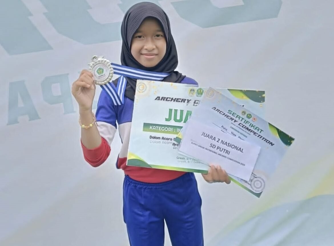 GRESIK, SabdaNews.com- Adalah Almira Mutia Maritza Altaf yang berhasil meraih prestasi pada kejuaraan Bupati Gresik Invitational Archery Competition 2025 yang diadakan Persatuan Panahan (Perpani) Gresik di Lapangan Sarana Olahraga (SOR) Timur Petrokimia Gresik Sabtu – Ahad (6-7/12/2025).