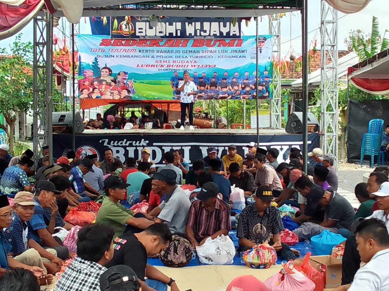 GRESIK, SabdaNews.com- Demi menghormati dan menghargai jasa para leluhur, budaya serta tradisi, Warga Dusun Kembangan Desa Turirejo Kecamatan Kedamean Kabupaten Gresik, Rabu (1/10/2025) menggelar tradisi sedekah bumi sangat meriah sekali berbeda dengan tahun sebelumnya kali ini diadakan dengan hiburan kesenian tradisonal budaya ludruk Budhi Wijaya dari Kabupaten Jombang.