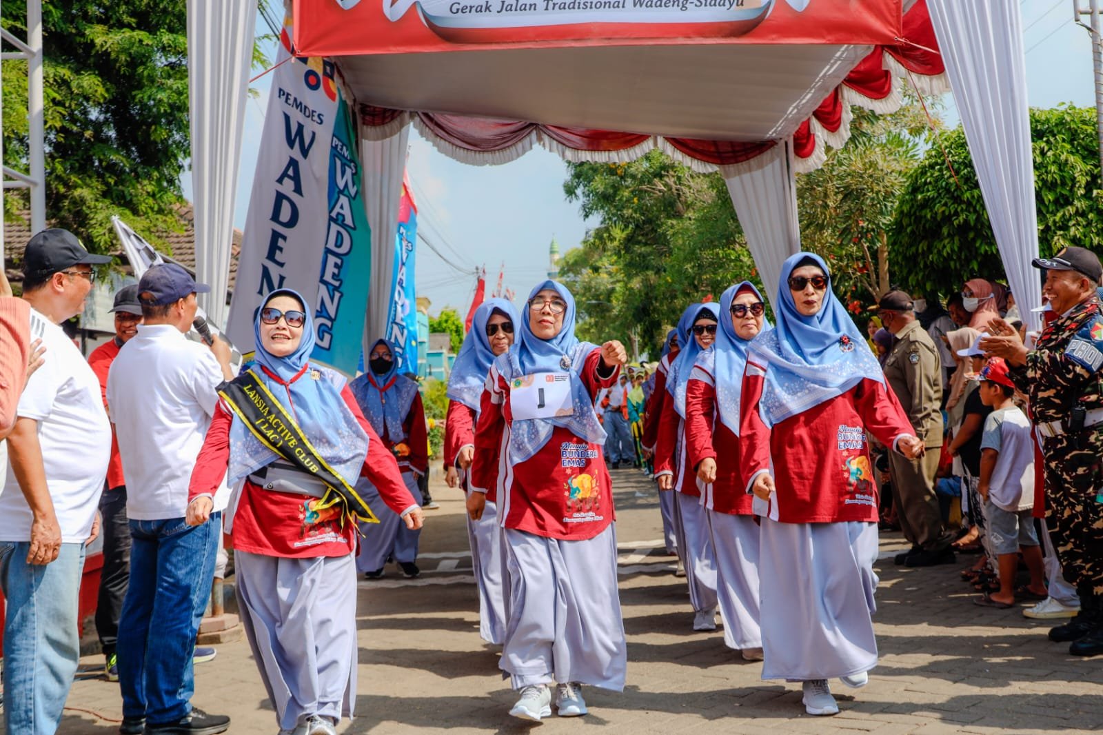 GRESIK, SabdaNews.com – Dalam rangka memeriahkan Hari Ulang Tahun (HUT) ke-80 Republik Indonesia, Sekretaris Daerah (Sekda) Kabupaten Gresik Achmad Washil Miftahul Rachman melepas peserta lomba gerak jalan tradisional Wadeng – Sidayu, Minggu (10/8/2025). Lomba dimulai dari depan Kantor Kepala Desa Wadeng Kecamatan Sidayu dan berakhir di Alun-Alun Sidayu tersebut diikuti sebanyak 221 peserta dari berbagai sekolah. Di antaranya SD, SMP, SMA/SMK, MI, MTs, ALIYAH, serta diikuti pula oleh PKDI, PPDI, Organisasi pemuda, lansisa dan kelompok masyarakat di Kecamatan Sidayu. “Meskipun cuaca hari ini panas, semangat kita tidak boleh pudar,” tegas Sekda Achmad Washil saat melepas para peserta lomba.