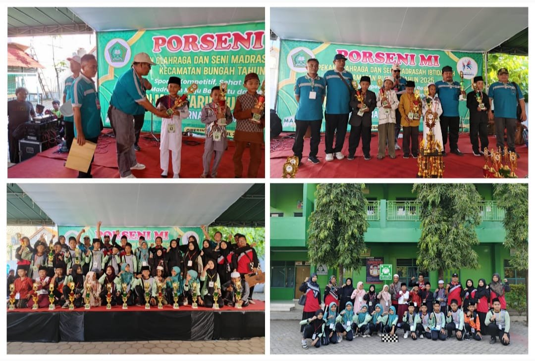 Dari 16 cabang yang diperlombakan dalam gelaran PORSENI MI 2025 yang diikuti oleh oleh putra – putri terbaik dari 27 lembaga Tingkat MI yang ada wilayah Kelompok Kerja Kepala Madrasah Ibtida’iyah ( KKMI ) Bungah, Alhamdulilah MI Tsamrotul Ulum Tajungwidoro dapat membawa pulang 16 Trofi kejuaraan dari masing-masing cabang lomba yang diperlombakan. Untuk cabang Pencak Silat dan Pildacil Bahasa Arab MI Tsamrotul Ulum Tajungwidoro Absen.