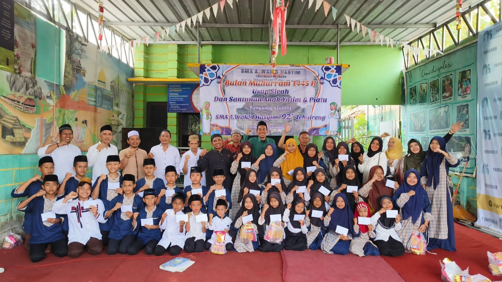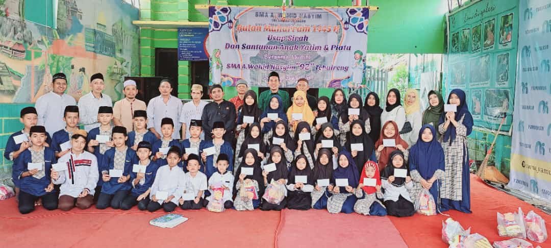 Diawali dengan kegiatan santunan 10 anak Yatim di Dusun Tebuireng Desa Cukir rumah sahabat Mujib. Berjalan dengan sederhana penuh keakraban dan kekeluargaan serta saling mendoakan. Berlanjut ke tempat lain yakni di Panti Asuhan Al Muhlasin kecamatan Peterongan Jombang. Acara ini Berlangsung giat santunan dengan peserta 40 anak yatim. Di mulai dengan doa washilah untuk keberkahan dan sambutan serta pembacaan doa bagi seluruh Alumni SMA A Wahid Hasyim dan Anak Yatim Dhuafa. Dan di akhir acara diisi dengan pemberian santunan kepada anak yatim para Alumni dengan mengusap Kepala (Sirah) satu persatu sebagai tanda doa dan kasih sayang