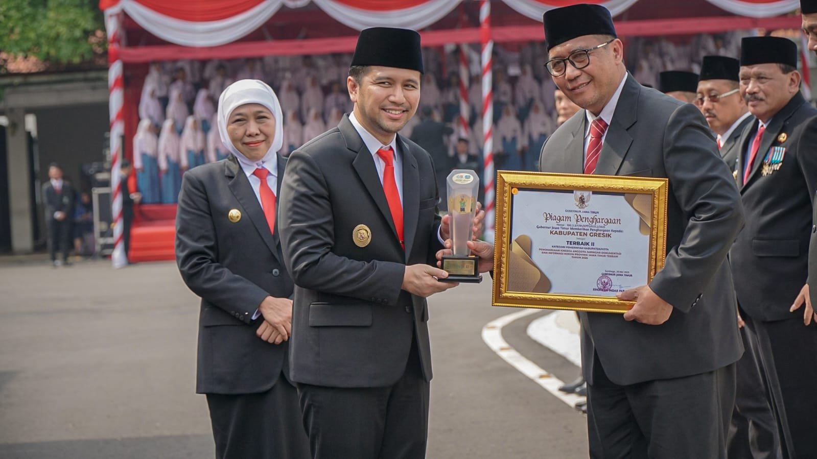 GRESIK, SabdaNews.com — Pemerintah Kabupaten Gresik meraih penghargaan sebagai Pengelola Jaringan Dokumentasi dan Informasi Hukum (JDIH) Terbaik II tingkat kabupaten/kota se-Jawa Timur tahun 2025. Penghargaan ini diserahkan langsung oleh Gubernur Jawa Timur, Khofifah Indar Parawansa, dan diterima oleh Sekretaris Daerah Kabupaten Gresik, Achmad Washil Miftahul Rachman, pada upacara peringatan Hari Kebangkitan Nasional di Gedung Negara Grahadi, Surabaya, Senin (20/5/2025).