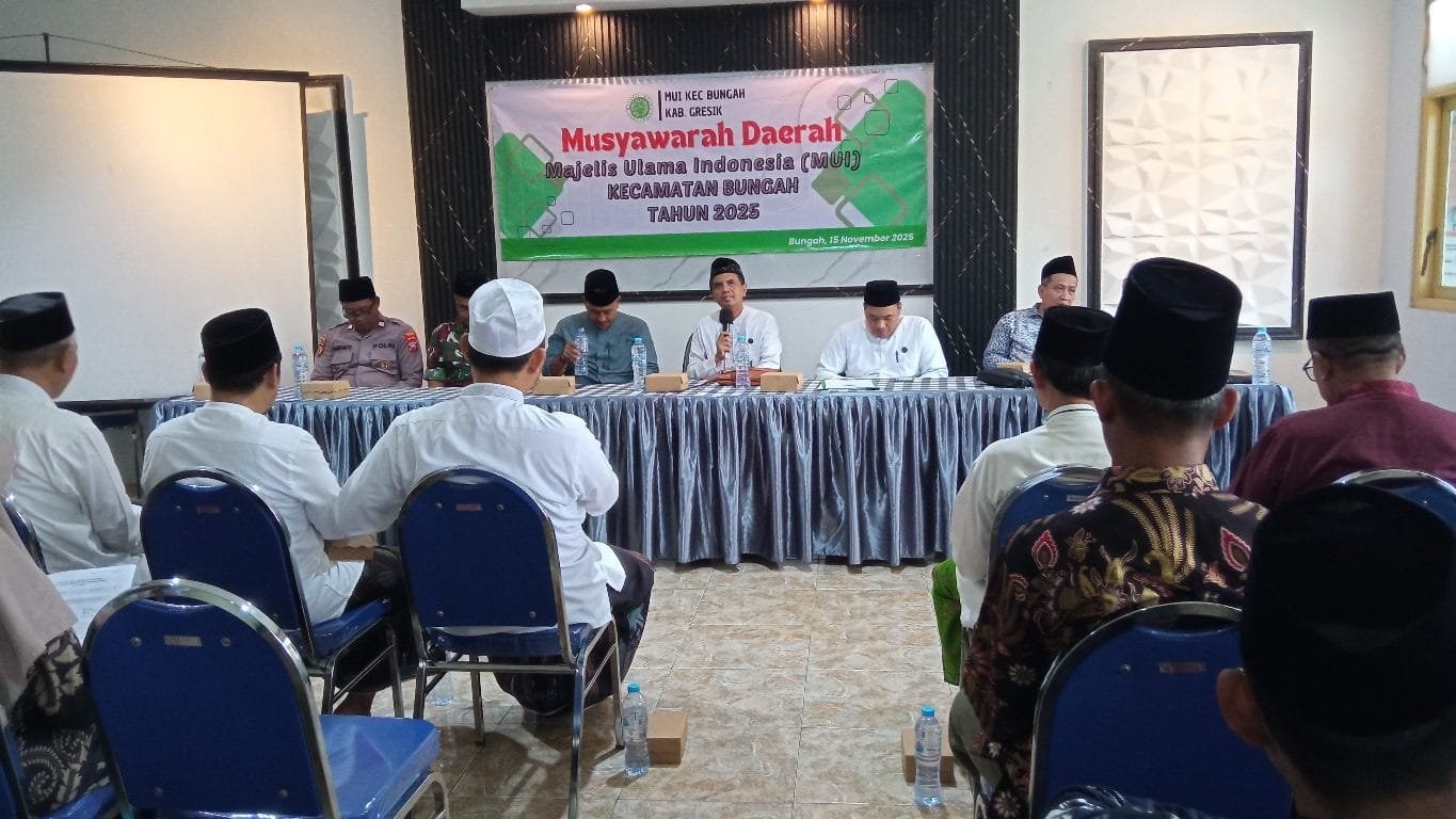 GRESIK, SabdaNews.com- Musyawarah Daerah (MUSDA) Majelis Ulama Indonesia (MUI) Kecamatan Bungah, menetapkan KH. Fathan Anwari, S.Ag, sebagai Ketua Terpilih masa khidmah 2025-2030. Kiai Fathan, dipilih secara musyawarah mufakah oleh Tim Formatur MUSDA MUI Bungah, pada Sabtu (15/11/2025), di Kantor MUI Kecamatan Bungah. Selain memilih ketua, kegiatan tadi juga menetapkan KH. Alauddin, Lc, sebagai Ketua Dewan Pertimbangan.
