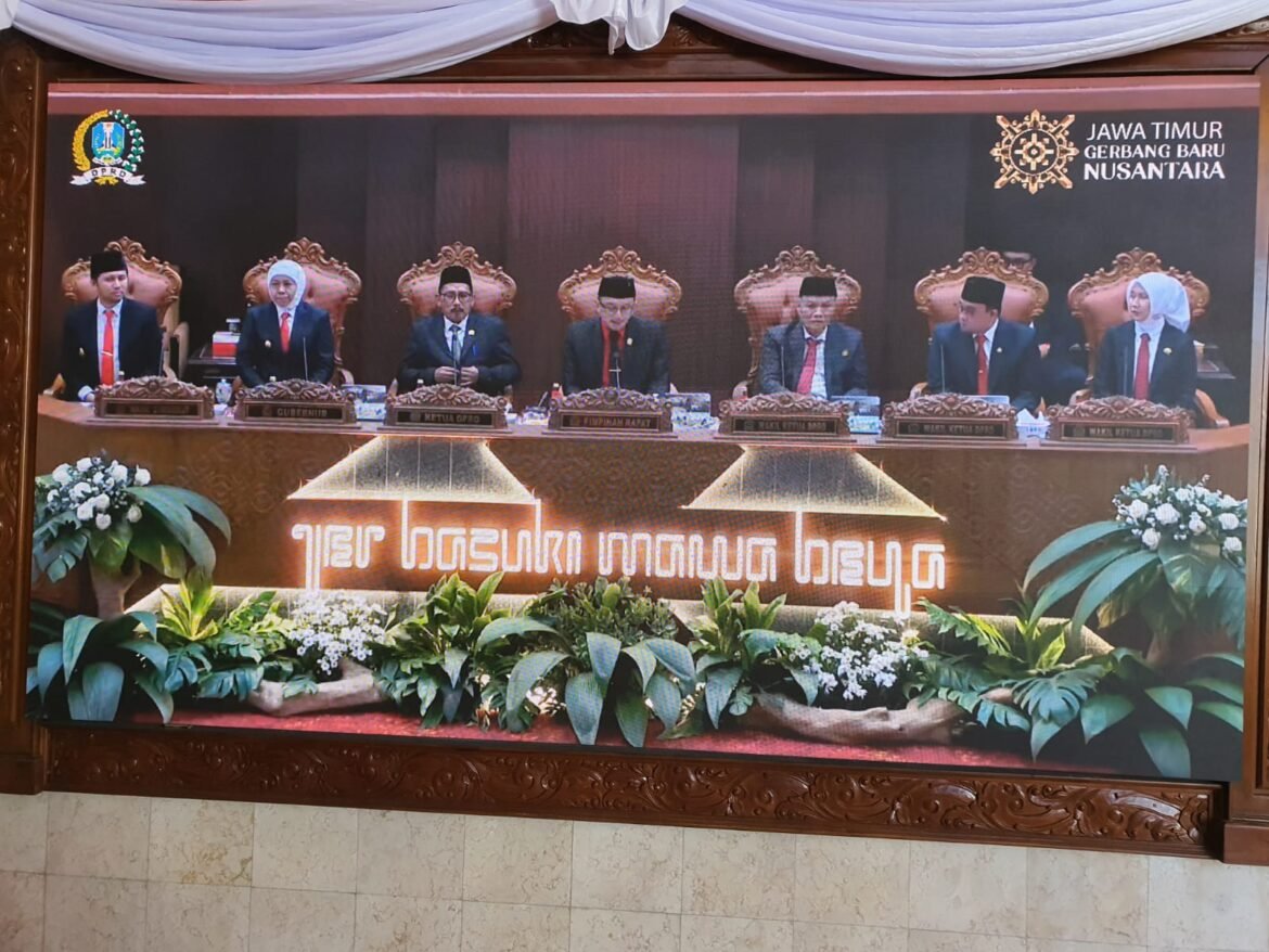SabdaNews.com – DPRD Provinsi Jawa Timur menggelar rapat paripurna istimewa, Jumat (15/8/2025). Rapat tersebut diselenggarakan dengan agenda mendengarkan pidato kenegaraan Presiden Prabowo Subianto dalam rangka Hari Ulang Tahun (HUT) ke-80 Kemerdekaan Republik Indonesia.