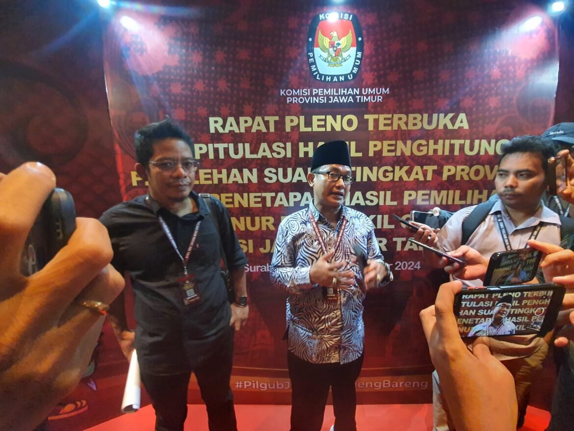 “Prinsipnya koridor hukum terkait pihak yang merasa keberatan terhadap hasil yang sudah kami tetapkan, diberi ruang selama 3 hari sejak KPU Jatim menandatangani surat keputusan tersebutuntuk mengajukan perselisihan hasil pemilihan kepala daerah dan lembaga peradilan yang diberi kewenangan untuk menyelesaikan perselisihan hasil tersebut adalah Mahkamah Konstitusi,” pungkasnya. (tis)J