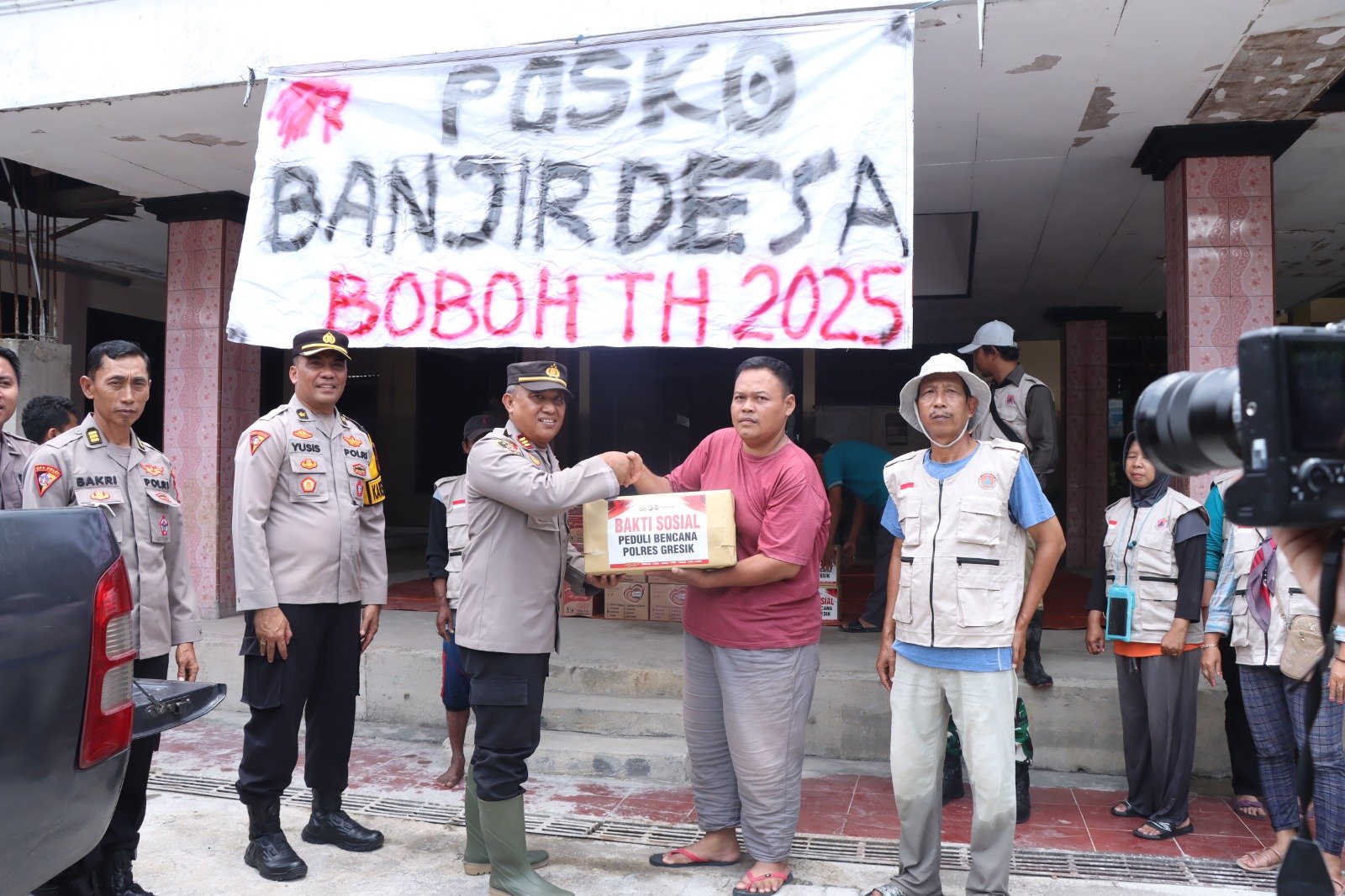 Bantuan tersebut disalurkan di Balai Desa Boboh yang difungsikan sebagai Posko Banjir. Rombongan Polres Gresik yang dipimpin Kabag Ops Polres Gresik, Kompol Yusis Budi Kuswanto, tiba di lokasi untuk meninjau langsung kondisi banjir serta menyerahkan bantuan secara simbolis kepada Kepala Desa Boboh, H. Abd. Majid. Adapun bantuan yang diberikan antara lain, telur, beras, minyak goreng, dan mie instan.