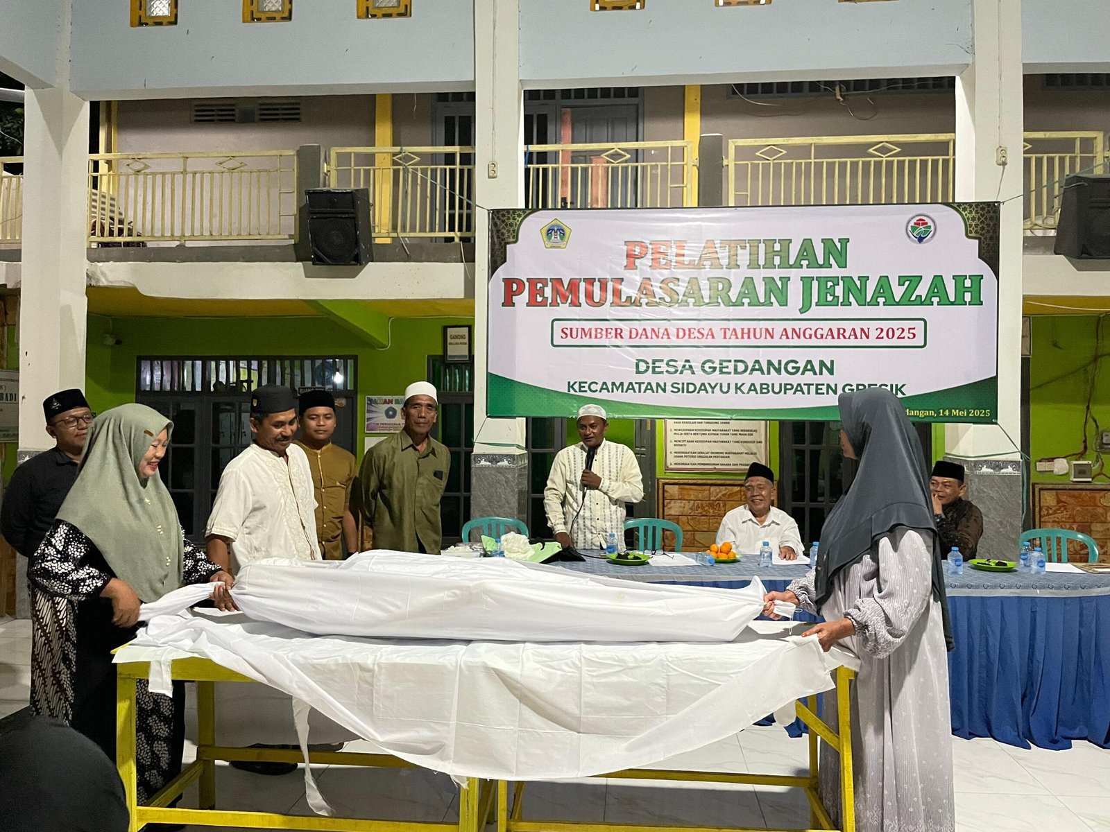 Kepala Desa Gedangan, Muhammad Sholih, S.Sos, MSi menjelaskan, kegiatan ini bertujuan memberikan pemahaman kepada masyarakat tentang tata cara merawat jenazah sesuai syariat Islam.
