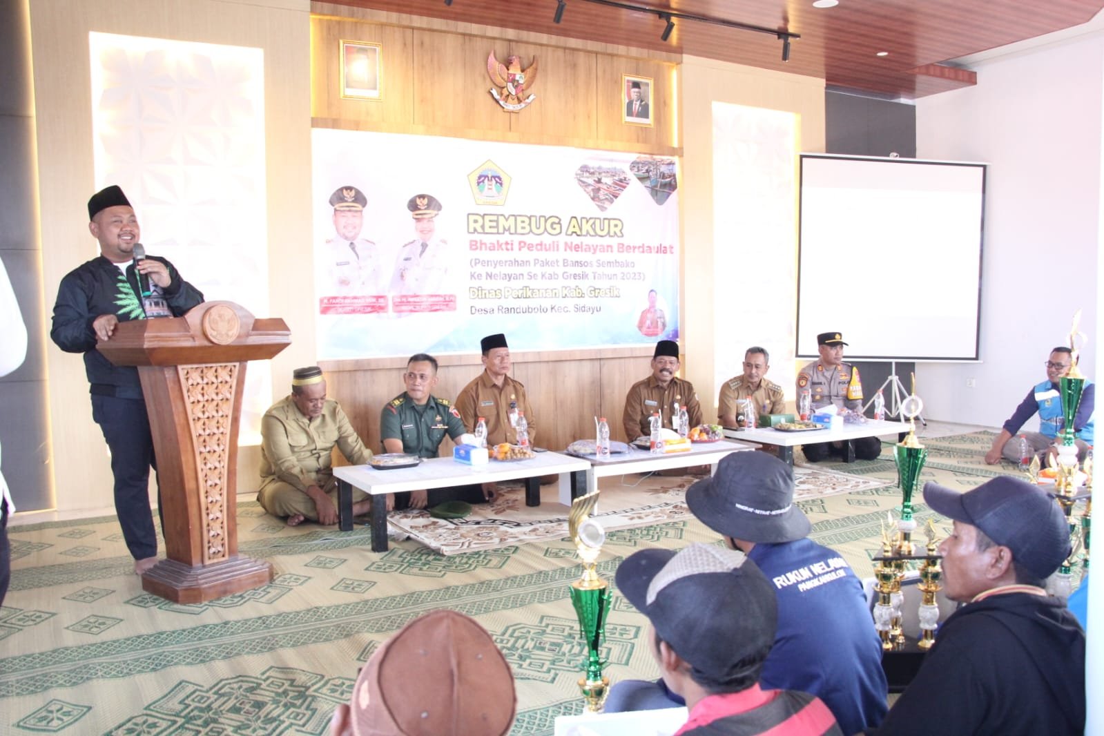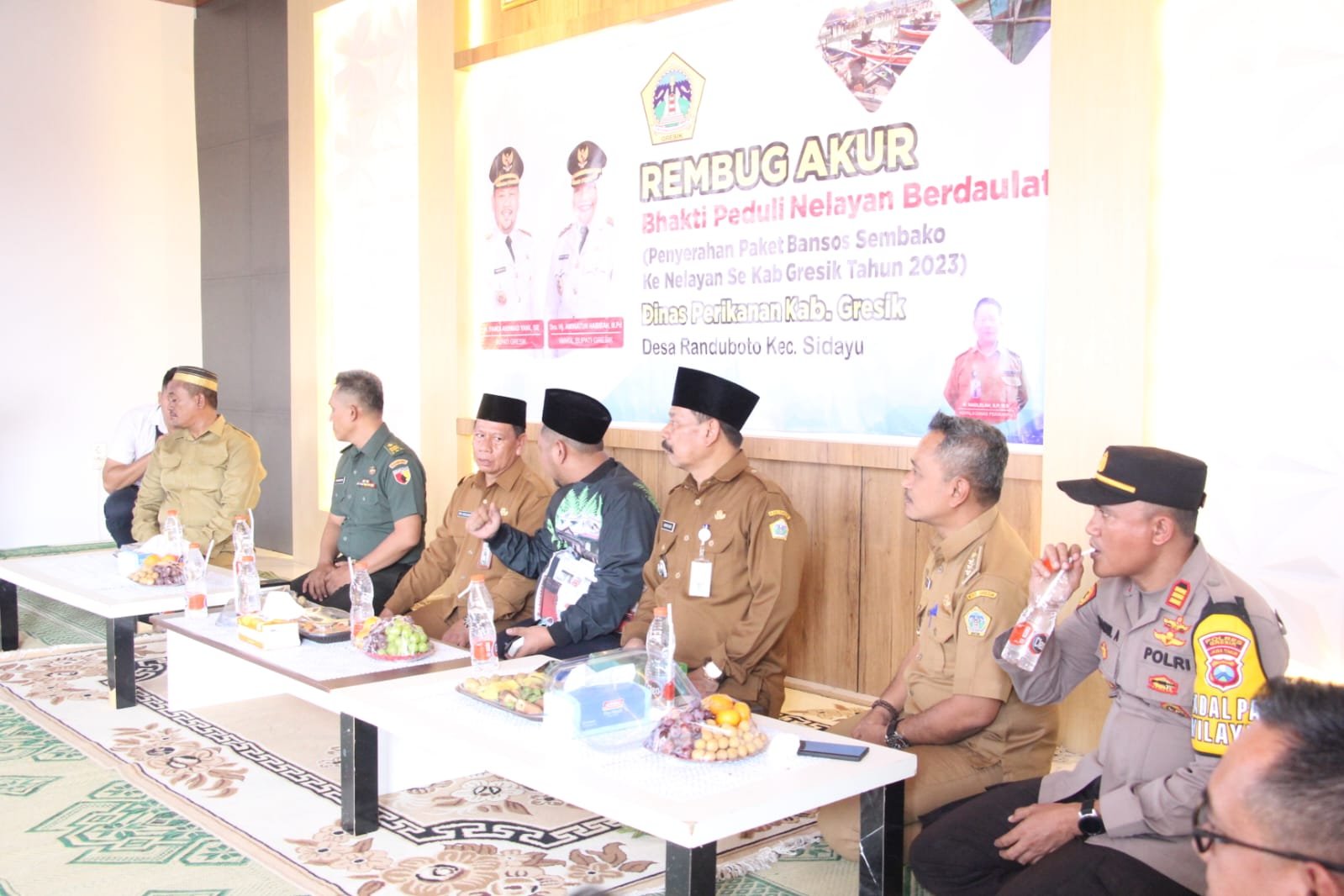 Sebagai permulaan, Bupati Gresik Fandi Akhmad Yani, menyerahkan secara simbolis 200 paket sembako kepada nelayan di wilayah Gresik Utara, Selasa (12/12). Selanjutnya, bantuan tersebut akan diberikan secara bertahap di lokasi masing-masing nelayan. “Kami terus berupaya memberikan perhatian kepada para nelayan. Semoga dengan bantuan ini dapat sedikit membantu para nelayan Gresik.” ucapnya saat rembug akur bersama 200 nelayan Gresik Utara di Balai Desa Randuboto.