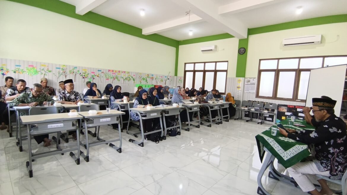 GRESIK, SabdaNews.com- Empat puluh Lima ustadz ustadzah SD Alam Muhammadiyah Kedanyang (SD Almadany) Kebomas Gresik mengikuti Pengajian dan pembinaan Guru Karyawan SD Almadany Sabtu (27/9/2025) di ruang kelas sekolah. Pengajian dan Pembinaan Gukar ini dibina oleh Ketua Lembaga Penyelenggara Haji dan Umroh Pimpinan Daerah Muhammadiyah Kabupaten Gresik H. Sutrisno Abu Fahmi.