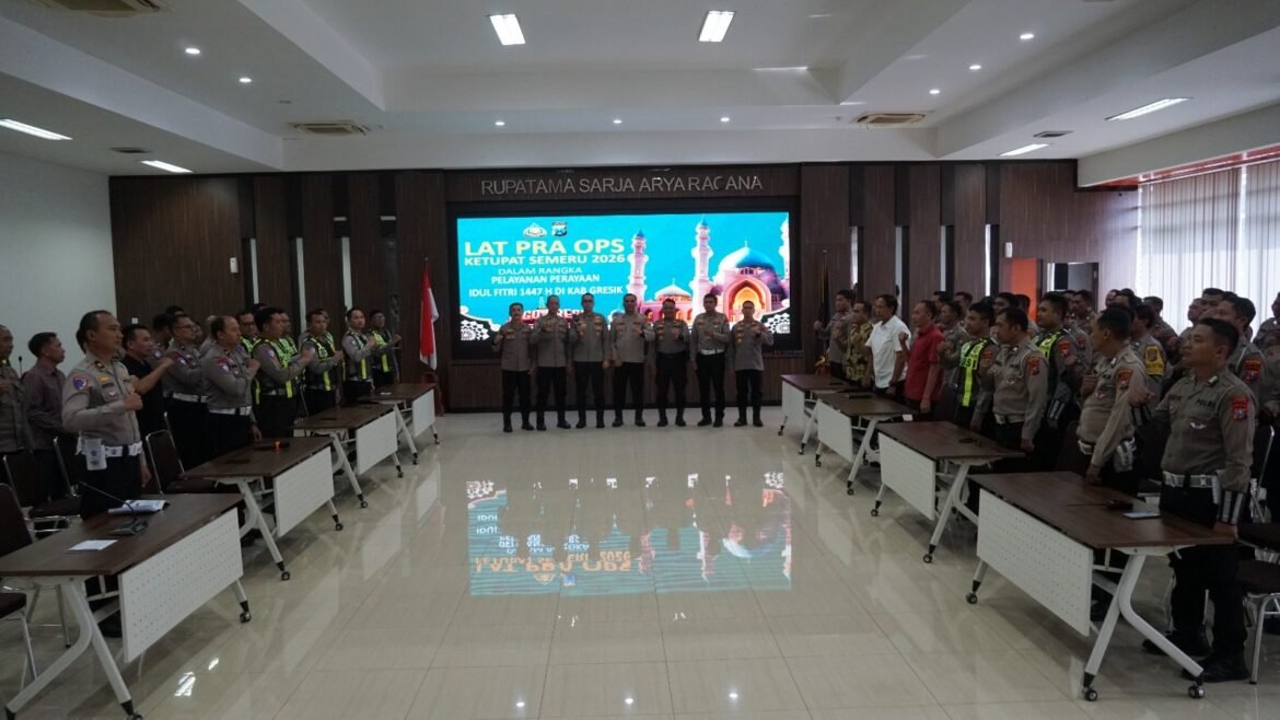 GRESIK ,SabdaNews.com- Dalam rangka mematangkan kesiapan pengamanan arus mudik dan balik Lebaran 2026, Polres Gresik menggelar Latihan Pra Operasi (Latpraops) Ketupat Semeru 2026 di Ruang Rapat Utama (Rupatama) Sarja Arya Racana, Lantai 3 Mapolres Gresik, Rabu (11/3/2026). Kegiatan ini dipimpin langsung oleh Wakapolres Gresik Kompol Shabda Purusha Putra, didampingi Kabag Ops Kompol Yusis Budi Krismanto, serta diikuti para pejabat utama, kasatgas, dan perwira yang terlibat dalam struktur Operasi Ketupat Semeru 2026.