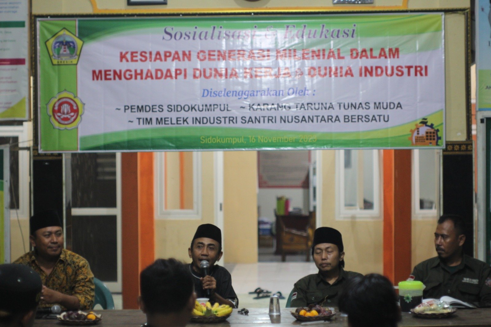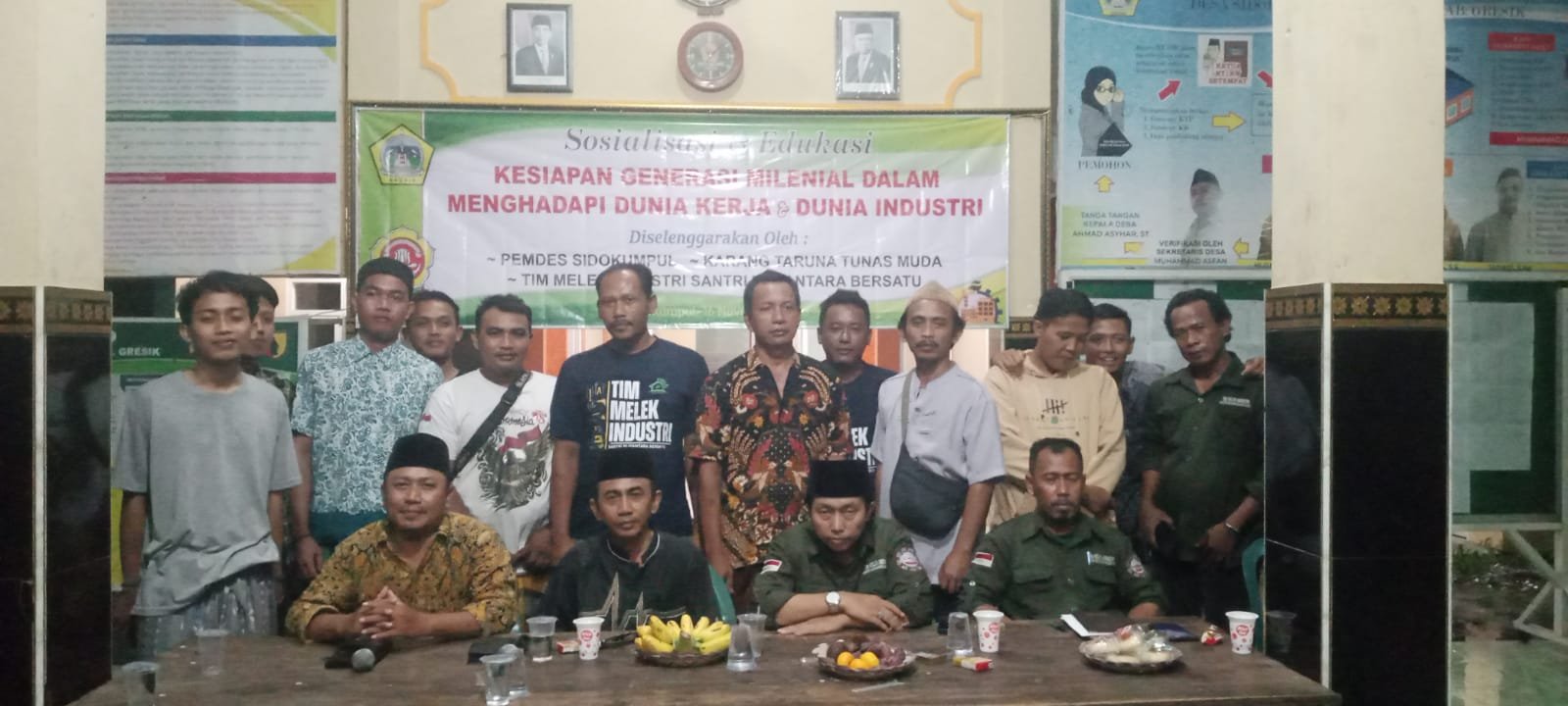 Kepala Desa (Kades) Sidokumpul Ahmad Asyhar, ST menyampaikan ucapan terima kasih yang sebesar – besarnya, kepada Tim Melek Industri SNB (Santri Nusantara Bersatu) yang telah berkenan hadir, di tengah kesibukannya mengawal dinamika industrialisasi di Kabupaten Gresik. “Ide awal kegiatan ini, berawal dari silaturahmi kami ke Sekretariat Melek Industri beberapa waktu yang lalu. Pak Widodo dan Tim-nya, sangat antusias dan semangat dalam memberikan konseling ketengakerjaan pada warga masyarakat, dari berbagai desa, kecamatan bahkan luar kabupaten,” terang Kades Asyhar.
