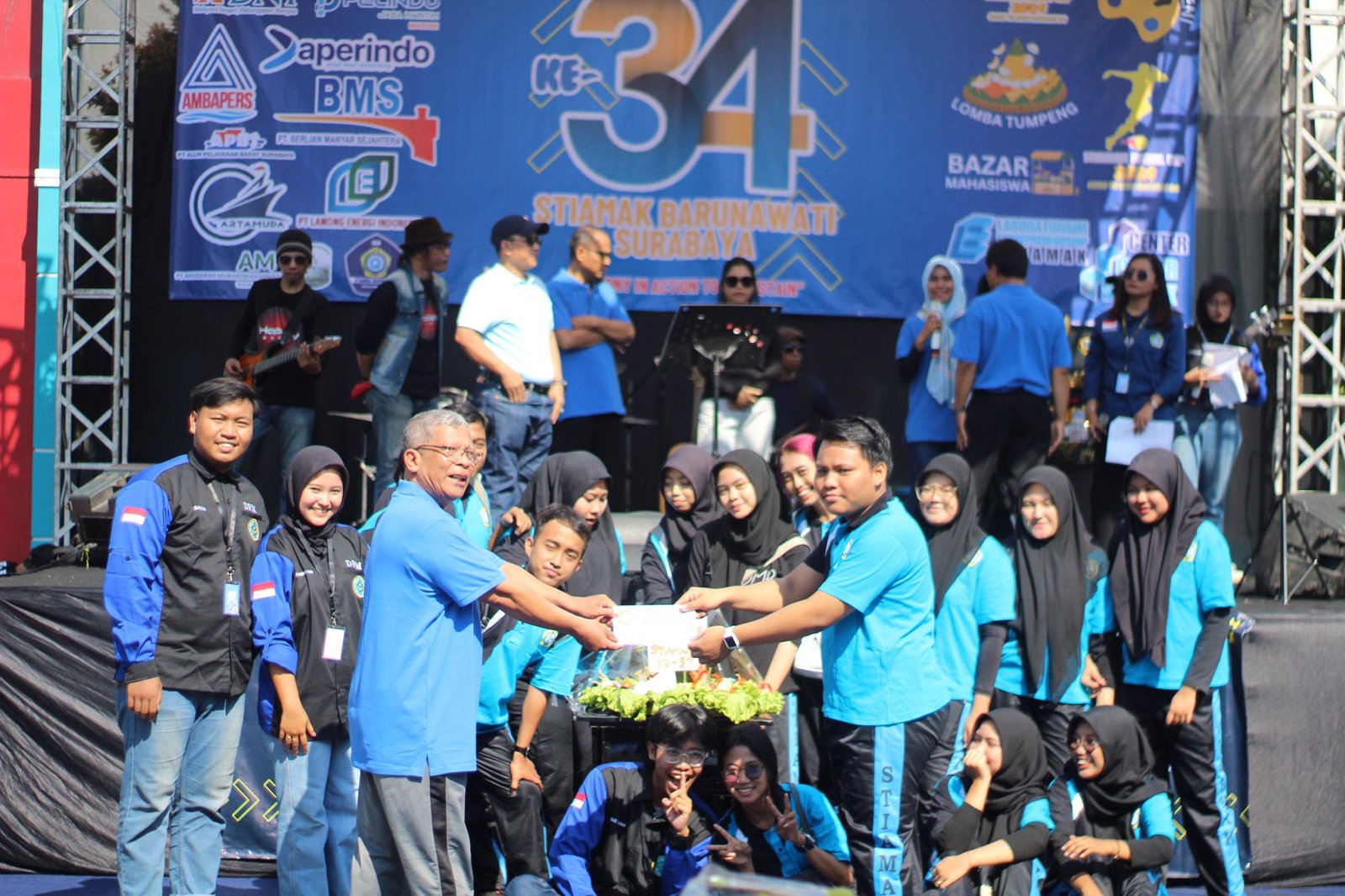 SURABAYA,SabdaNews.com-Peringatan Dies Natalis STIAMAK Barunawati Surabaya ke 34 sangat meriah. Berbagi hadiah, penghargaan dan pentas musik. Diantaranya, pembagian hadiah lomba turnamen voli dan turnamen futsal antar siswa SMA/SMK Surabaya, Sidoarjo dan Gresik. Juga, lomba tumpeng antar kelas mahasiswa dan best booth. Sementara penghargaan diberikan kepada mahasiswa berprestasi Kevin, juara karate nasional. Tim E-sport dan perusahaan penyumbang beasiswa bagi mahasiswa berprestsi dari PT Pelayaran Meratus.
