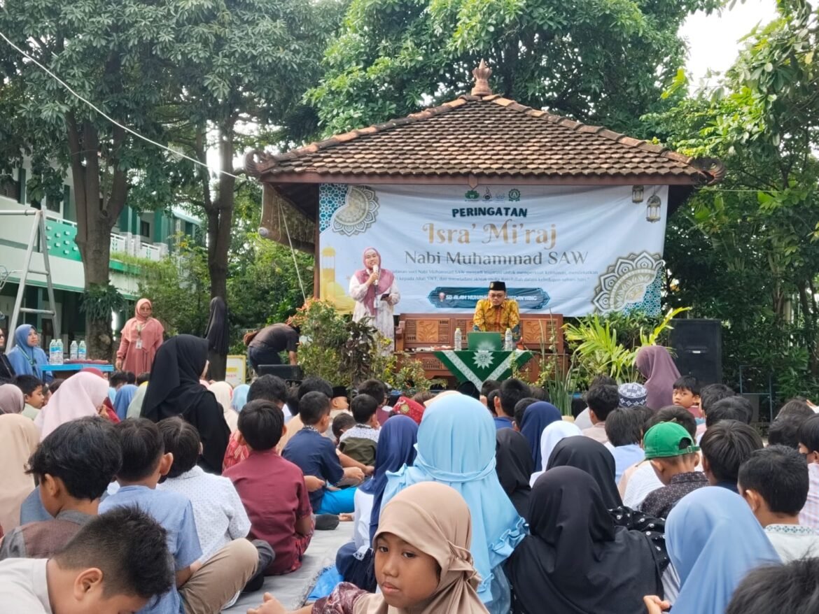 GRESIK, SabdaNews.com- Kamis (15/1/2026) pagi halaman kantor SD Alam Muhammadiyah Kedanyang (SD Almadany) Kebomas Gresik Jawa Timur terlihat beda. Gelaran tikar terpal berwarna biru dan hijau memenuhi halaman depan sekolah alam itu. Pagi ini ada kegiatan Peringatan Isra’ Mi’raj Nabi Muhammad SAW dengan menghadirkan Guru MTs Muhammadiyah 15 (Mulimas) Al Mizan Lamongan Ust. Alfain Jalaluddin Ramadlan sebagai penceramah.