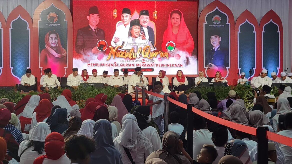 SabdaNews.com – DPD PDI Perjuangan Jatim melalui Baitul Muslimin Indonesia (Bamusi) menyelenggarakan peringatan Nuzulul Quran dan santunan anak yatim, dhuafa serta janda di halaman kantor DPD PDI Perjuangan, Jalan Raya Kendangsari Industri nomor 57 Surabaya, Jumat (21/3/2025).
