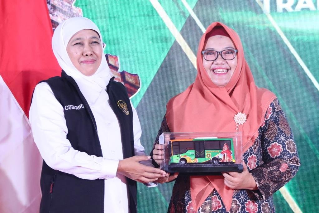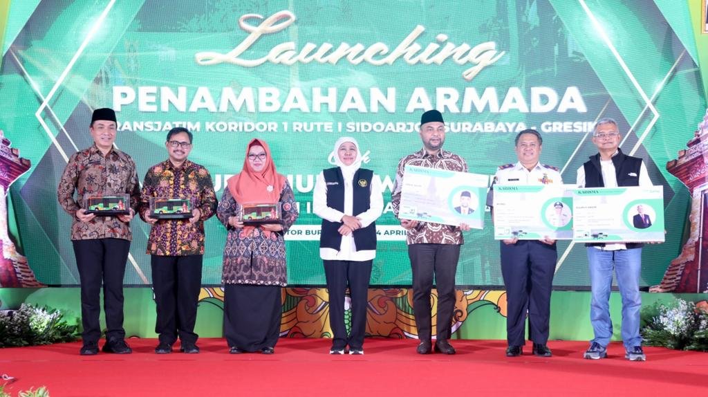 Secara khusus, Gubernur Jawa Timur Khofifah Indar Parawansa meluncurkan langsung penambahan Bus Transjatim Koridor I Rute Sidoarjo-Surabaya-Gresik di Halaman Kantor Pemkab Gresik, Jumat, (14/4/2023).