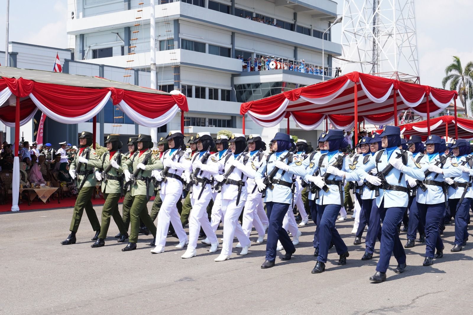 Kelima, jaga nama baik TNI dimanapun berada, selalu ingat bahwa tindakan sekecil apapun akan berdampak pada institusi TNI secara umum. Selesai upacara Peringatan Hari Ulang Tahun ke-78 TNI di lanjutkan dengan Parade dan Defile. (Penrem 083/Bdj/Rahayu/Red)