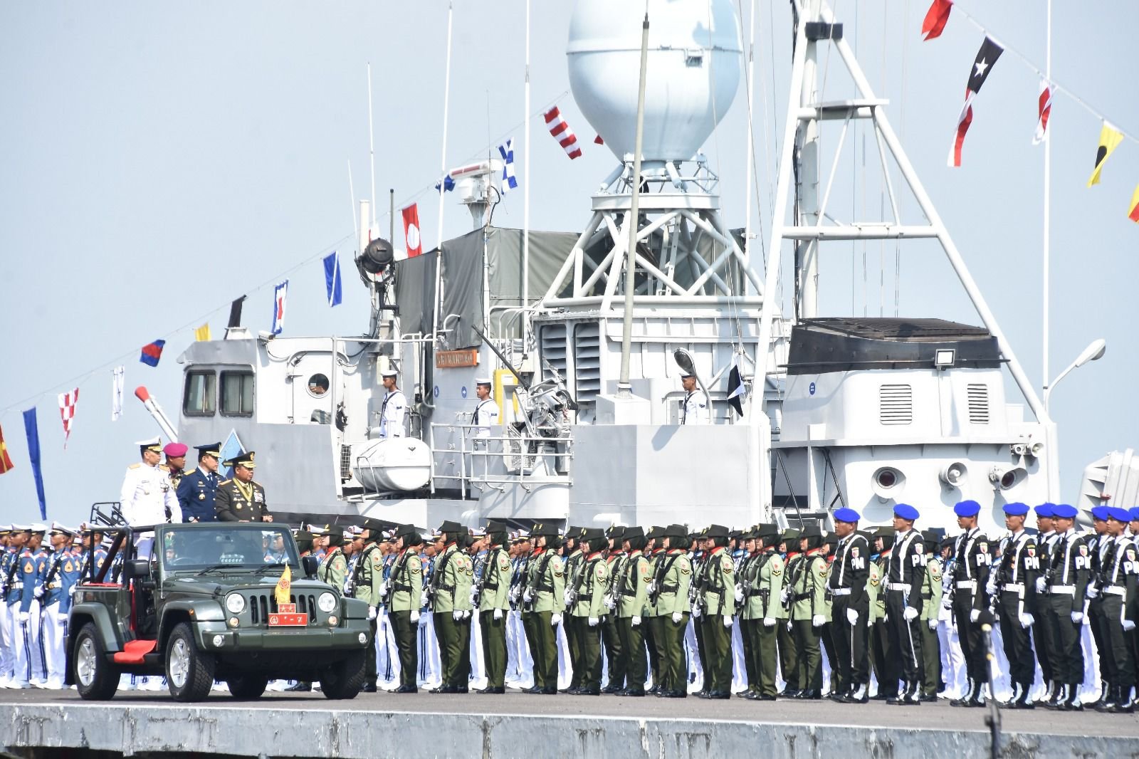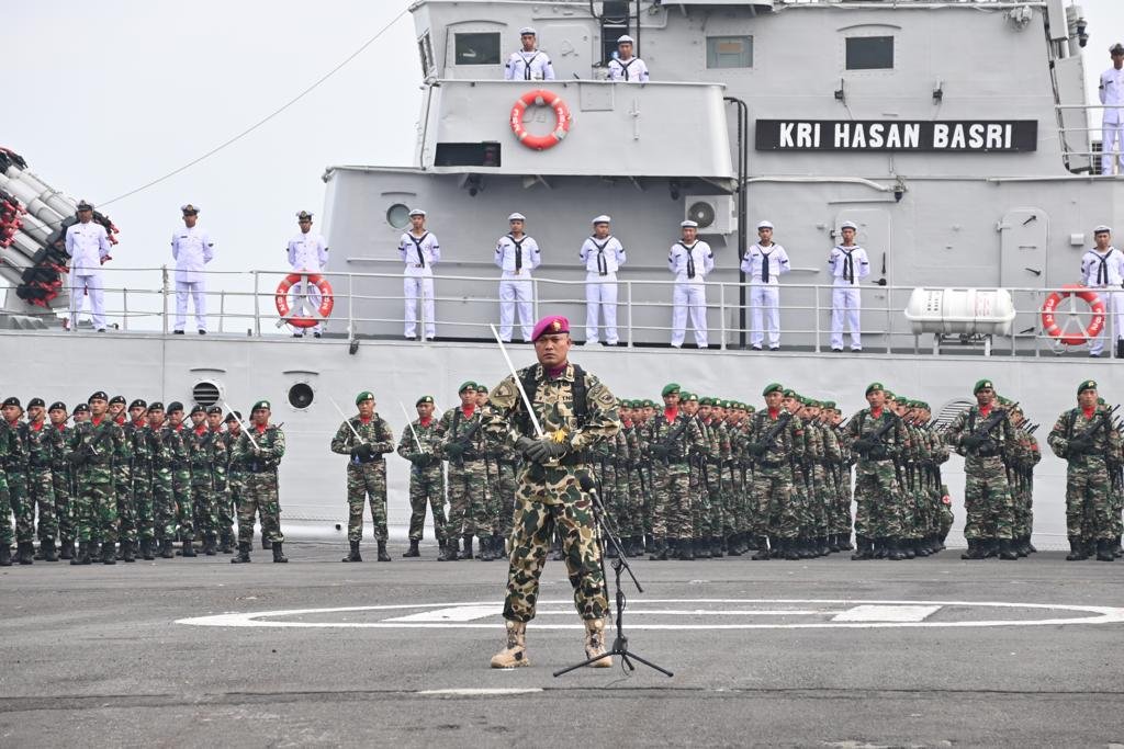 SURABAYA, SabdaNews.com- Danrem 083/Bdj Kolonel Inf Jamaludin, S.H hadiri upacara HUT TNI ke-78, Panglima Kodam V/Brw, Mayjen TNI Farid Makruf, M.A, selaku Komandan Gartap III/Surabaya memimpin jalannya upacara Hari Ulang Tahun (HUT) Tentara Nasional Indonesia (TNI) ke-78 yang diikuti prajurit TNI dan PNS bertempat di Dermaga Ujung Koarmada II, Ujung Surabaya, Kamis (5/10/2023).