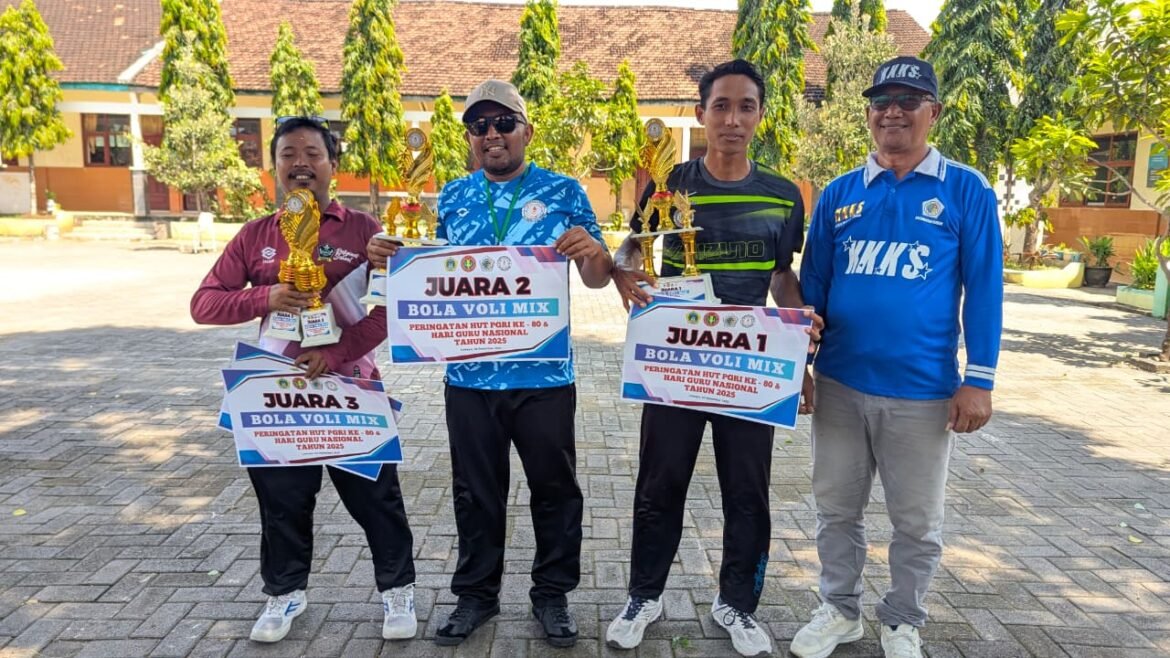 Hasil Tim yang Juara di pertandingan Bola Volley Mix pada peringatan HUT PGRI Ke -80 dan HGN 2025 sebagai berikut : Juara 1 diraih olehTim KKG Gugus 2 .Juara 2 diraih oleh Tim KKG Gugus 2. Sedangkan juara 3 diraih oleh Tim UPT SMP Negeri 11 Gresik. Adapun Juara Harapan 1 diperoleh Tim KKG PJOK, Juara 2 diperoleh oleh Tim KKG PAI dan Juara 3 diraih Tim KKS Gugus 1