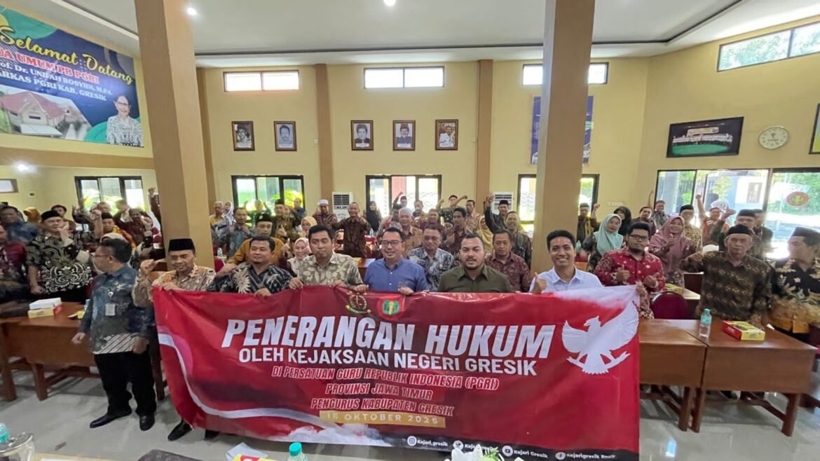 GRESIK,SabdaNews.com – Gebrakan positif terus dilakukan PGRI Kabupaten Gresik. Kali ini, PGRI Kota Santri yang dikomandani H Beri Avita Prasetya, M.Pd, MM menggelar sosialisasi penyuluhan hukum bagi para Kepala Sekolah (Kasek) SMP, Kamis (16/10/2025) di Gedung Guru PGRI Kabupaten Gresik. Diharapkan pengelolaan sekolah dilakukan sesuai aturan dan tidak menimbulkan anggaran ganda.